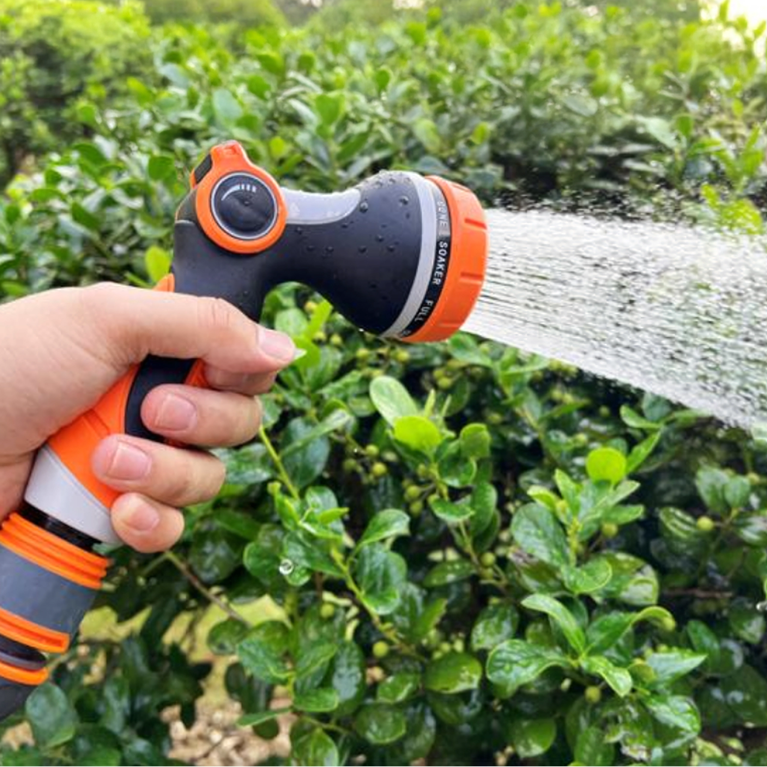 Ez a többcélú kerti szórófej forgó üzemmódválasztóval pontos vízsugár-beállítást kínál minden ház körüli feladathoz. A ergonomikus, csúszásmentes markolatnak köszönhetően hosszabb munka közben is kényelmes a fogása, a hüvelykujjas átfolyásszabályzó pedig lehetővé teszi a fokozatmentes állítást ravasz nyomása nélkül.