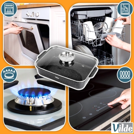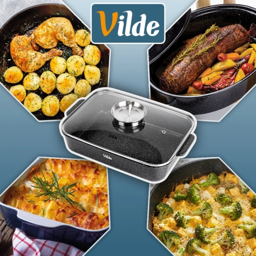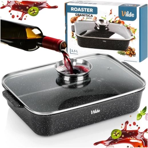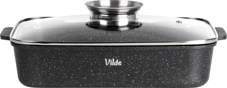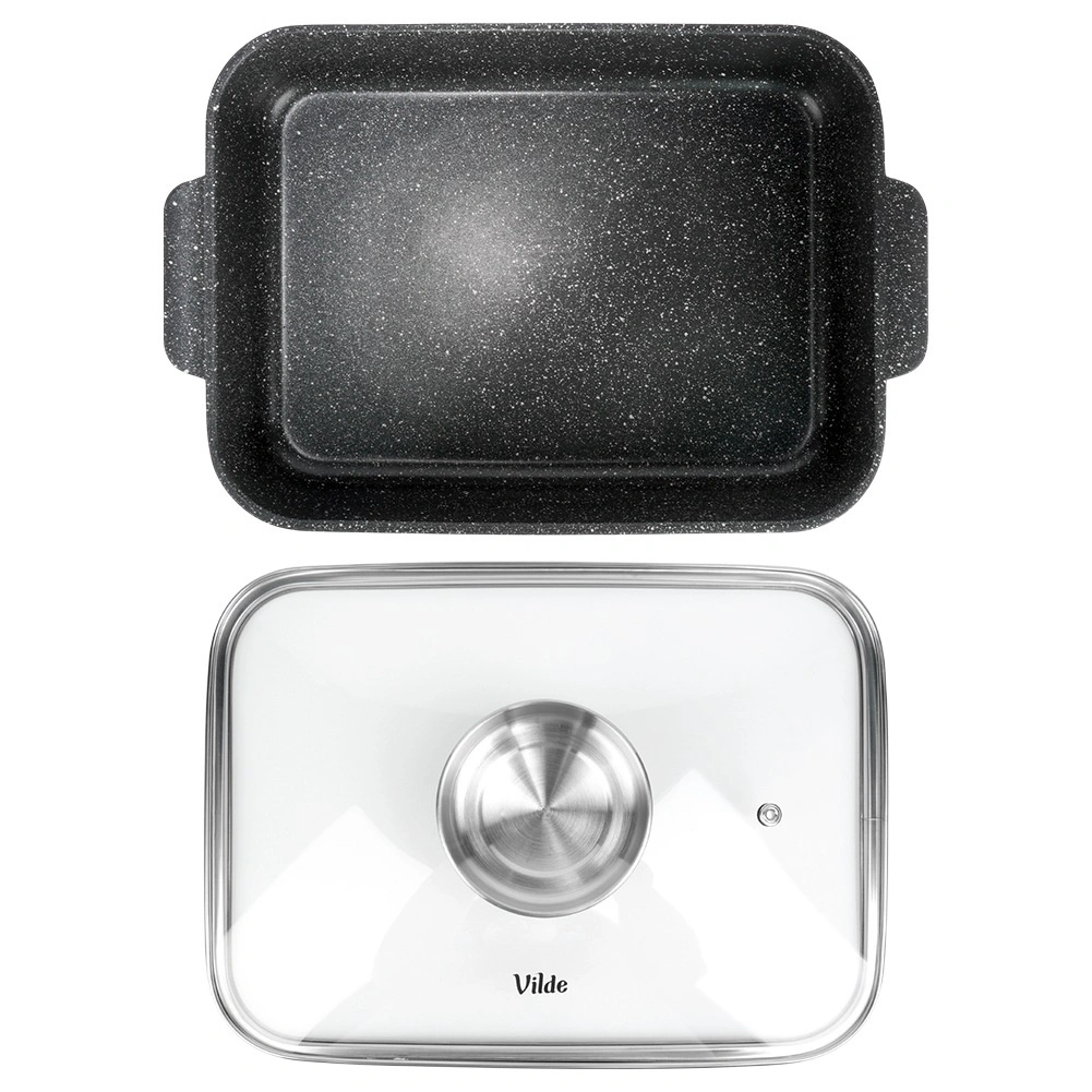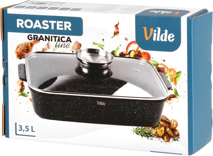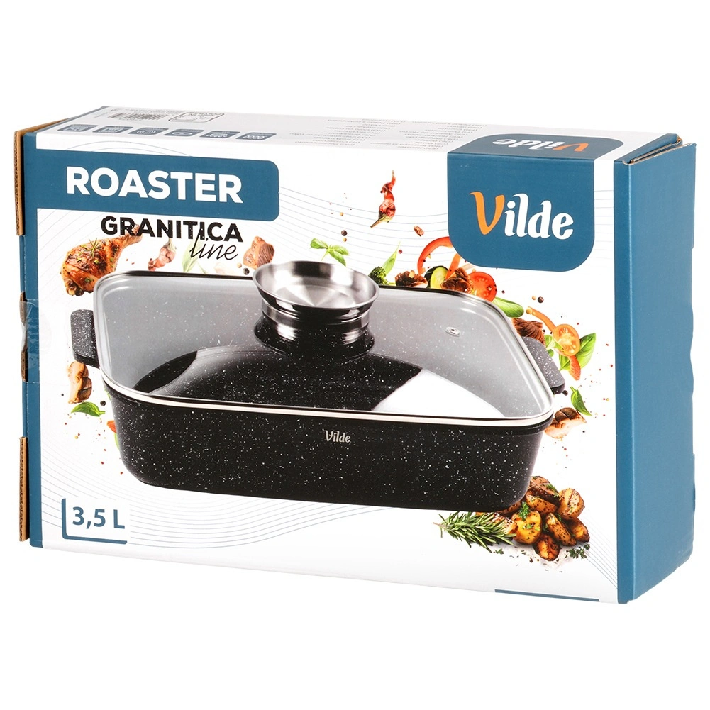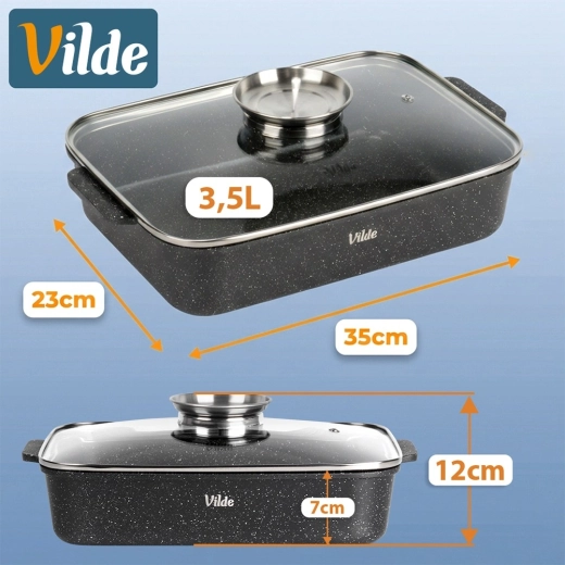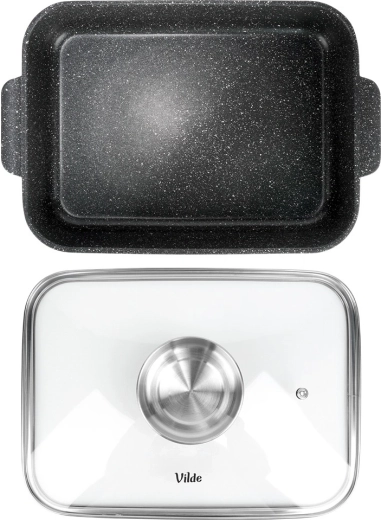 Eredeti VILDE termék a GRANITICA LINE sorozatból, európai szabványoknak megfelelően gyártva. Méretek fedővel: 35 × 23 × 12 cm, fedő nélkül mért magasság: 7 cm.