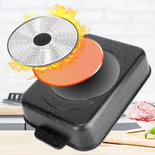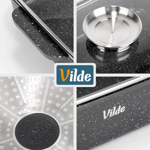 A tartós gránit bevonat minimalizálja az odaégést és megkönnyíti a tisztítást. Az átlátszó fedél gőzkieresztő rendszerrel lehetővé teszi a főzés menetének ellenőrzését.