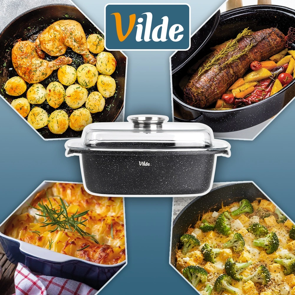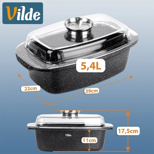 Ideális húsok, rakott ételek, zöldségek és komplett egyedényes fogások készítéséhez. A fedővel együtt mért méretek: 39 × 22 × 17,5 cm, a tepsi magassága fedő nélkül 11 cm, ami elegendő helyet biztosít családi adagokhoz.