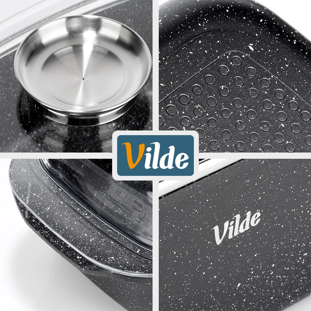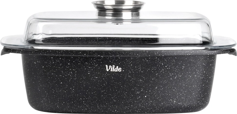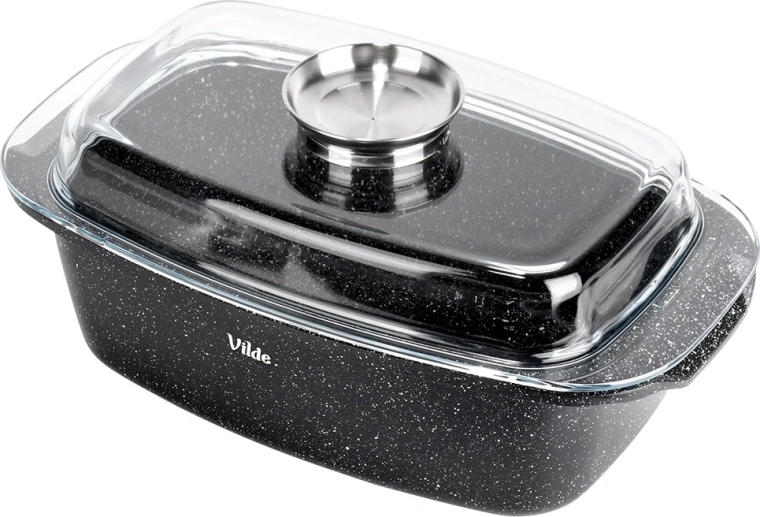 A téglalap alakú, öntött alumínium tepsi tartós, gránit tapadásmentes bevonattal sokoldalú segítőtárs a mindennapi főzésben. Az üvegfedő központi folyadék-adagolója lehetővé teszi víz, bor vagy pác utántöltését a fedő felemelése nélkül – szaftos, aromás eredményért.