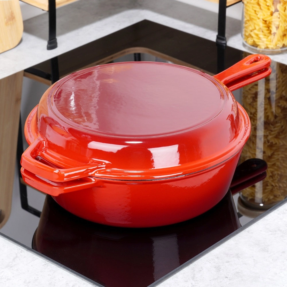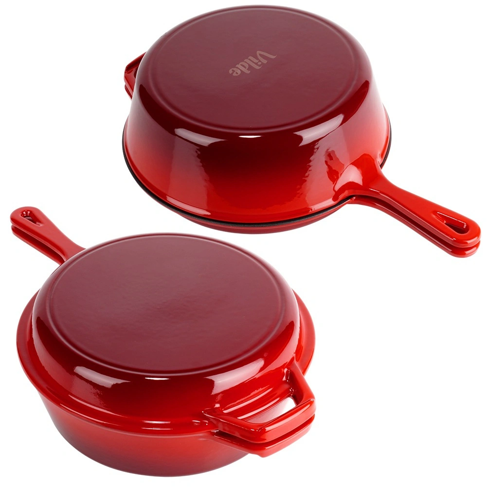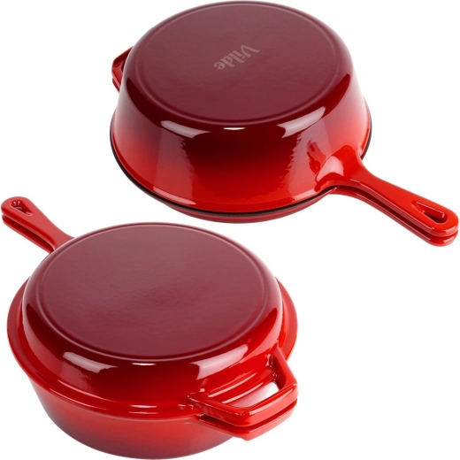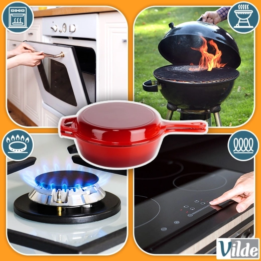 Praktikus, tartós öntöttvas készlet minőségi zománcozott felülettel, univerzális főzéshez minden tűzhelytípuson, beleértve az indukciót és a sütőt is. Egyenletes hőelosztás, hosszú hőtartás és tapadásmentes zománc a tökéletes sütéshez, pároláshoz és sütéshez. A serpenyő fedőként is használható a lábashoz, így könnyedén készíthet pörkölteket, rakott ételeket vagy lassú sütést otthon és grillen is.