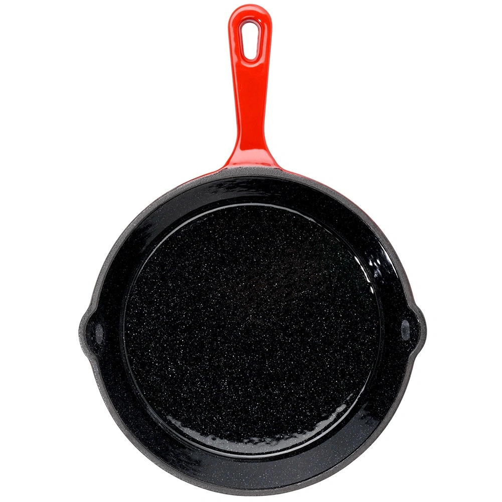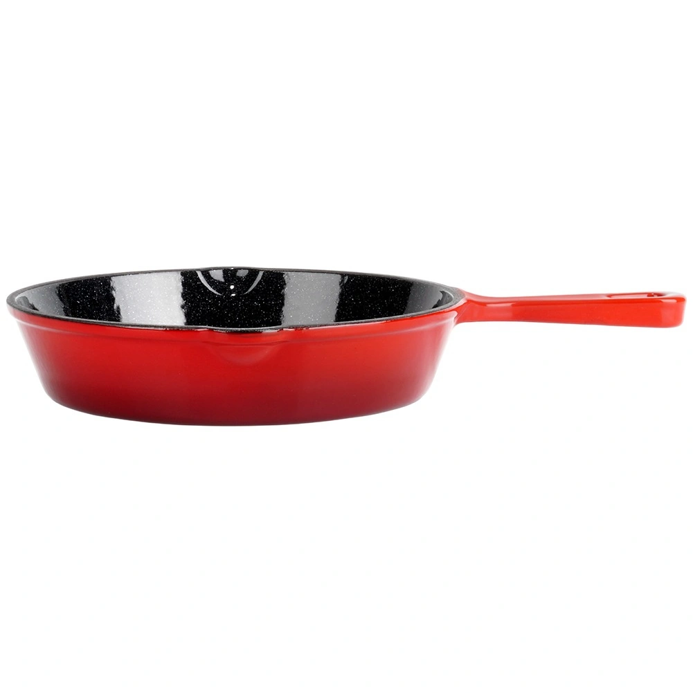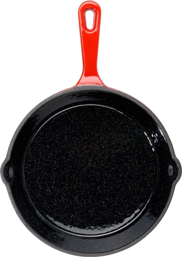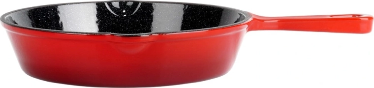 A belső fekete és a külső piros zománc védi a serpenyőt a korróziótól, megkönnyíti a tisztítást és esztétikus megjelenést ad. Ideális a mindennapi főzéshez.
