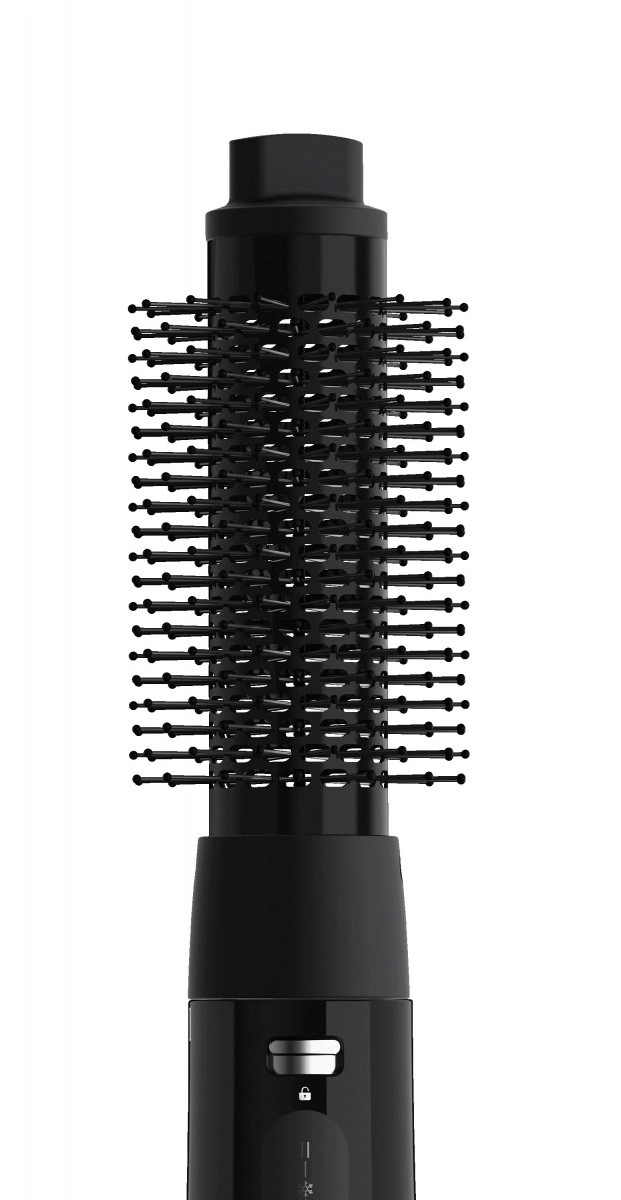 A szellőző kefefej egyenletesen oszlatja el a meleg levegőt a hengeren keresztül, így fésülés közben egyszerre szárít és formáz – sima hajhosszakat és dús töveket eredményezve.