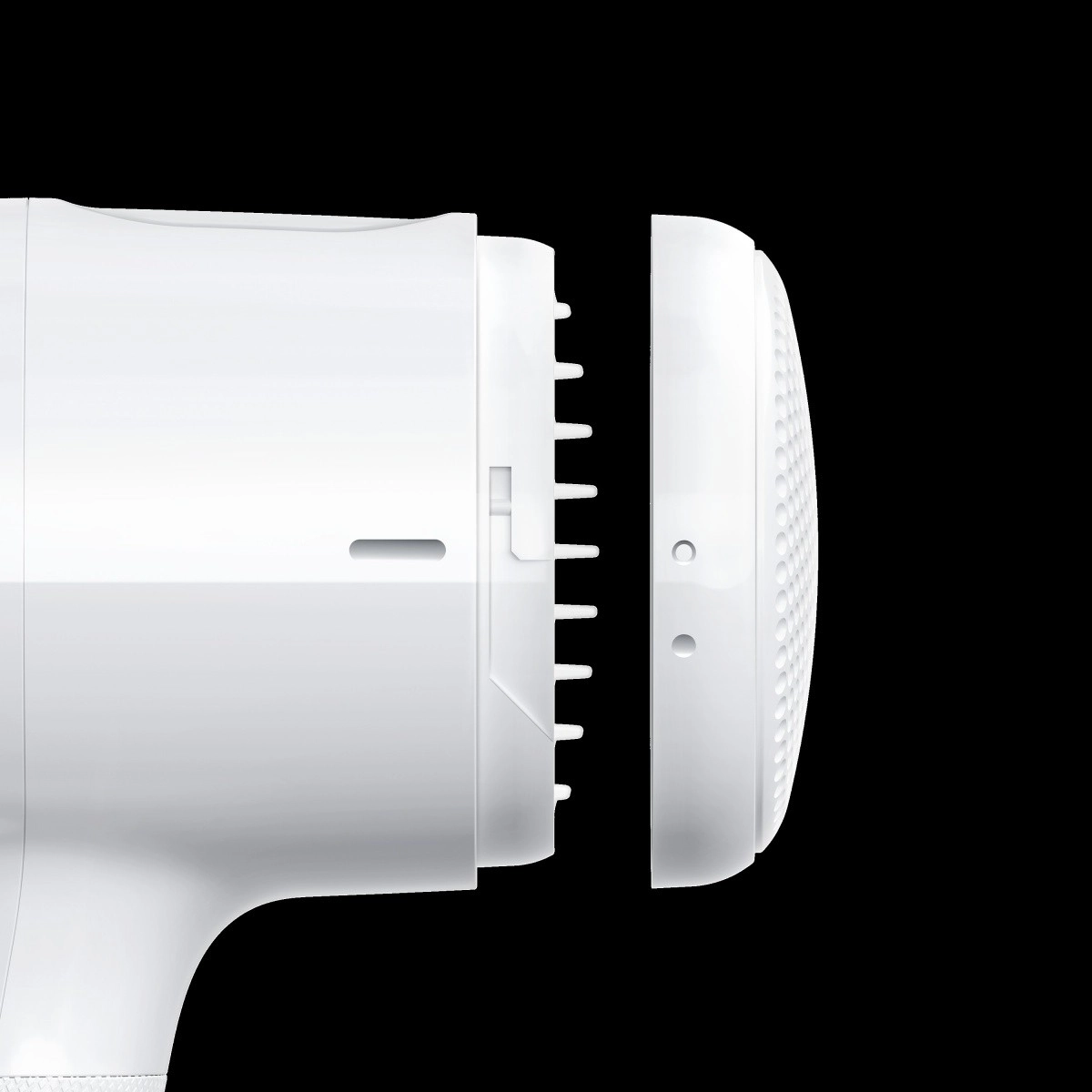 A keskeny fúvóka pontosan oda irányítja a levegőt, ahol szükség van rá – a tincsek kisimításához és a végek definiálásához.