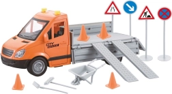 A lehajtható rámpákkal ellátott platform megkönnyíti a tartozékok fel- és lerakását. A gyerekek így hiteles közúti munkákat és szervizbeavatkozásokat játszhatnak el.