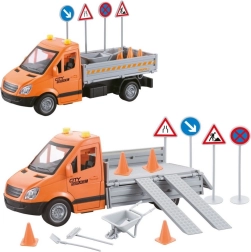 A csomag tartalmaz közlekedési bójákat, táblákat, sorompókat és kisebb szerszámokat, amelyekkel a gyerekek könnyedén kialakíthatják saját építkezésüket vagy útszakasz-lezárásukat. A masszív műanyag kivitel biztonságos és alkalmas a mindennapos játékra.