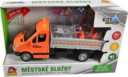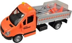 Ez a narancssárga teherautó rakodóplatformmal és lehajtható rámpákkal hiteles élményt nyújt a városi szolgáltatások és útmunkák világából. A lendkerekes meghajtás elemek nélkül is egyenletes mozgást biztosít, míg a valósághű részletek és kiegészítők támogatják a fantázia és a finommotorika fejlődését.