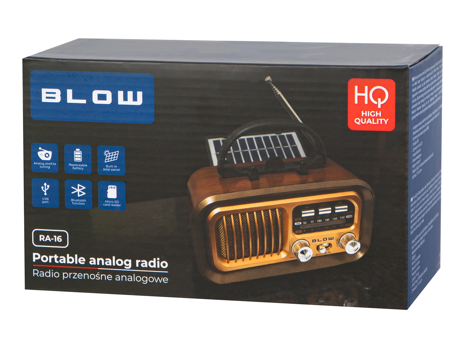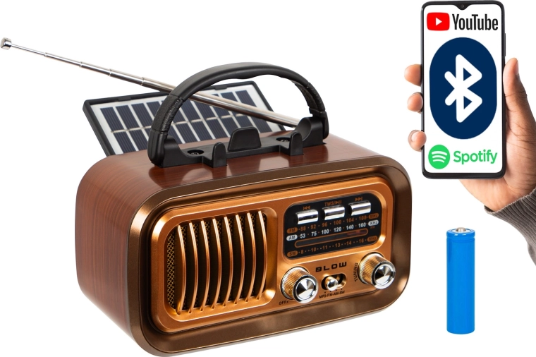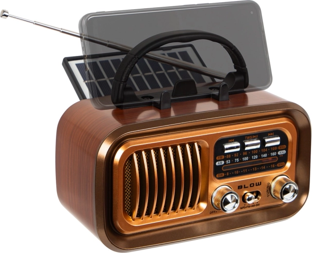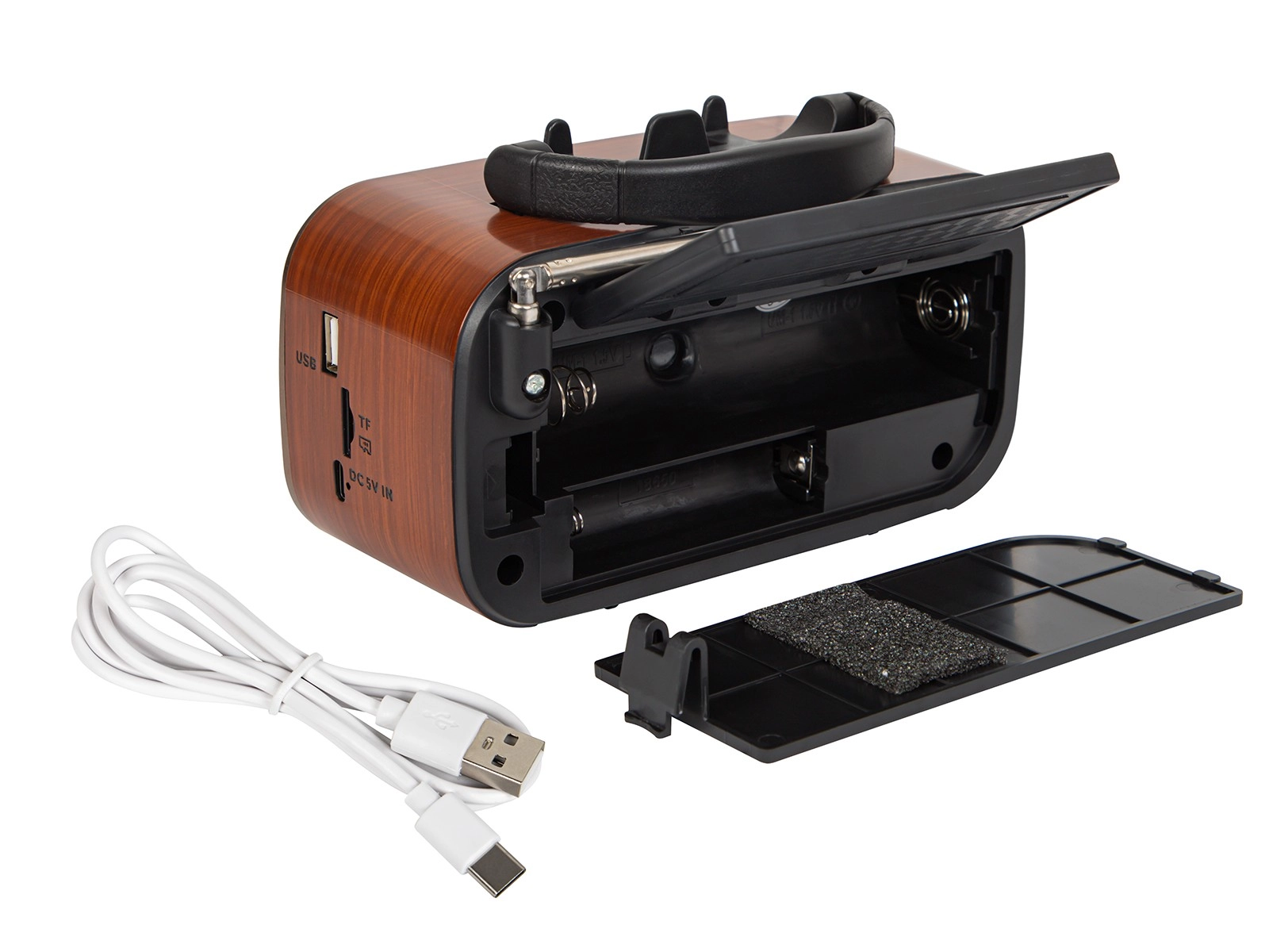 hordozható retro AM/FM rádió napelemes töltéssel és Bluetooth-szal