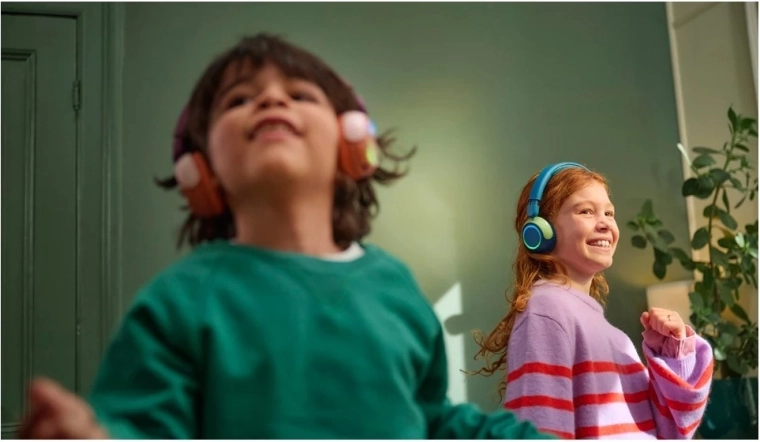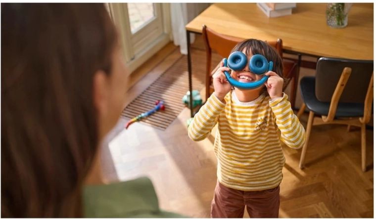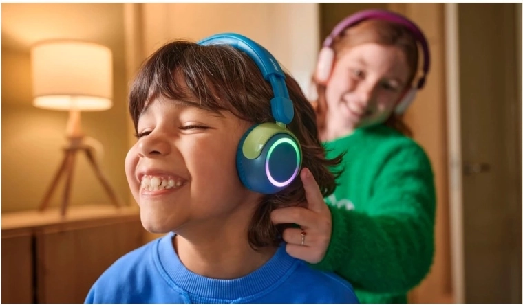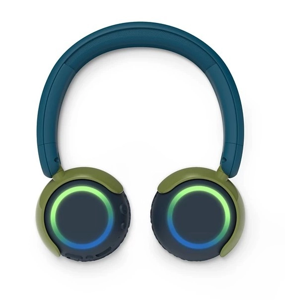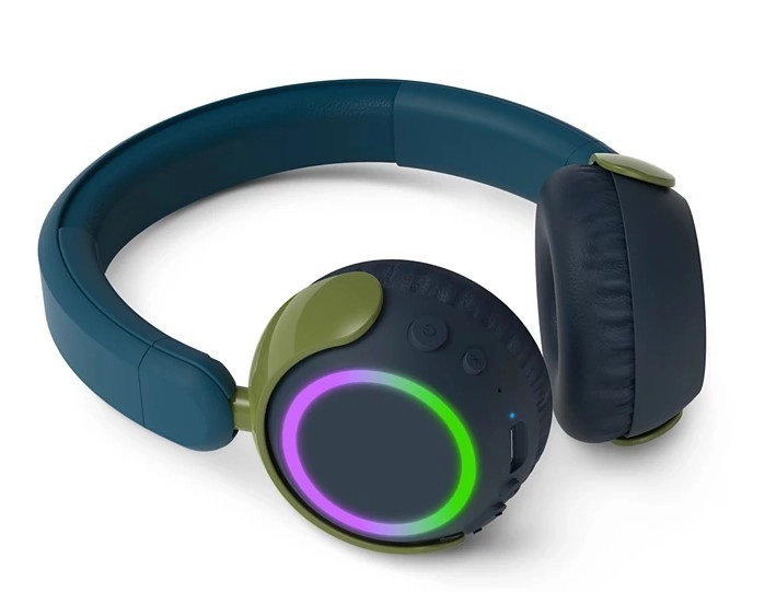 Színes LED gyűrűk a kagylókon és nagy gombok segítik a gyerekeket a kezelésben. Az összehajtható kialakítás kényelmes viselést és helytakarékos tárolást biztosít.