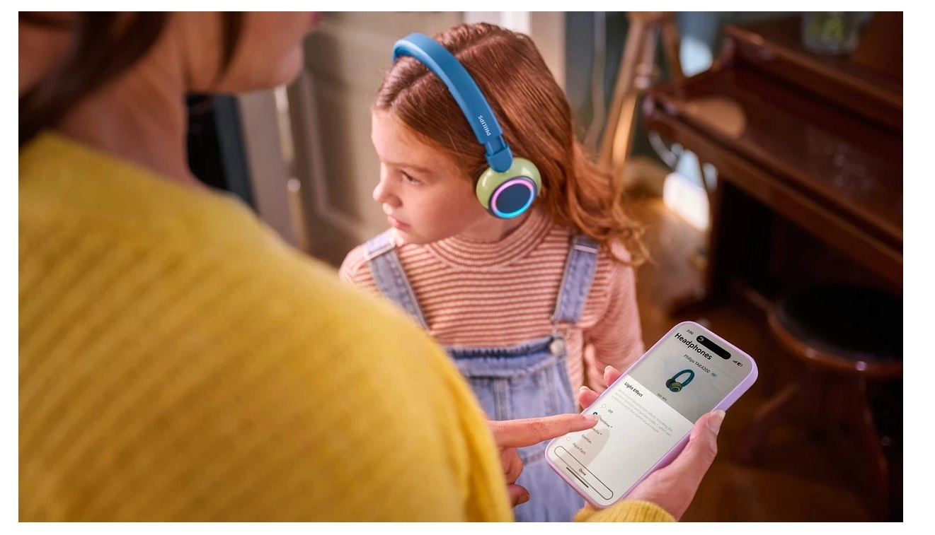 Védje a gyerekek hallását az alapértelmezett 75 dB-es otthoni korláttal, valamint a Philips Headphones alkalmazásban aktiválható 85 dB-es utazási móddal.