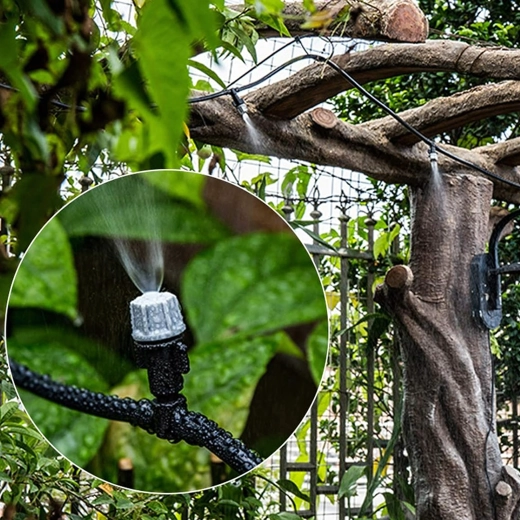 A fúvókák egyenletes ködöt hoznak létre, amely nem terheli a leveleket, és optimális mikroklímát tart fenn a növények számára. Ideális üvegházakhoz, ágyásokhoz és teraszokhoz.