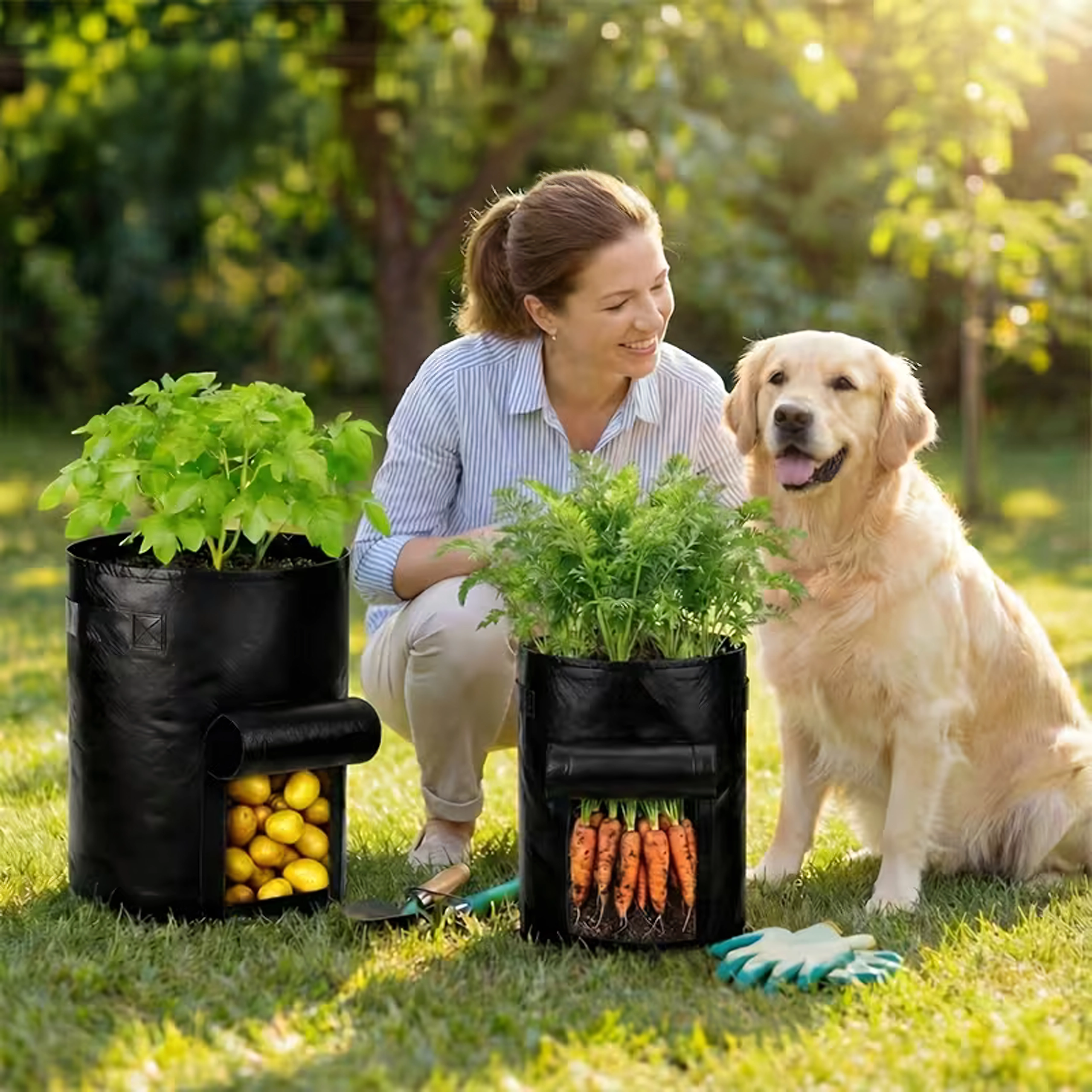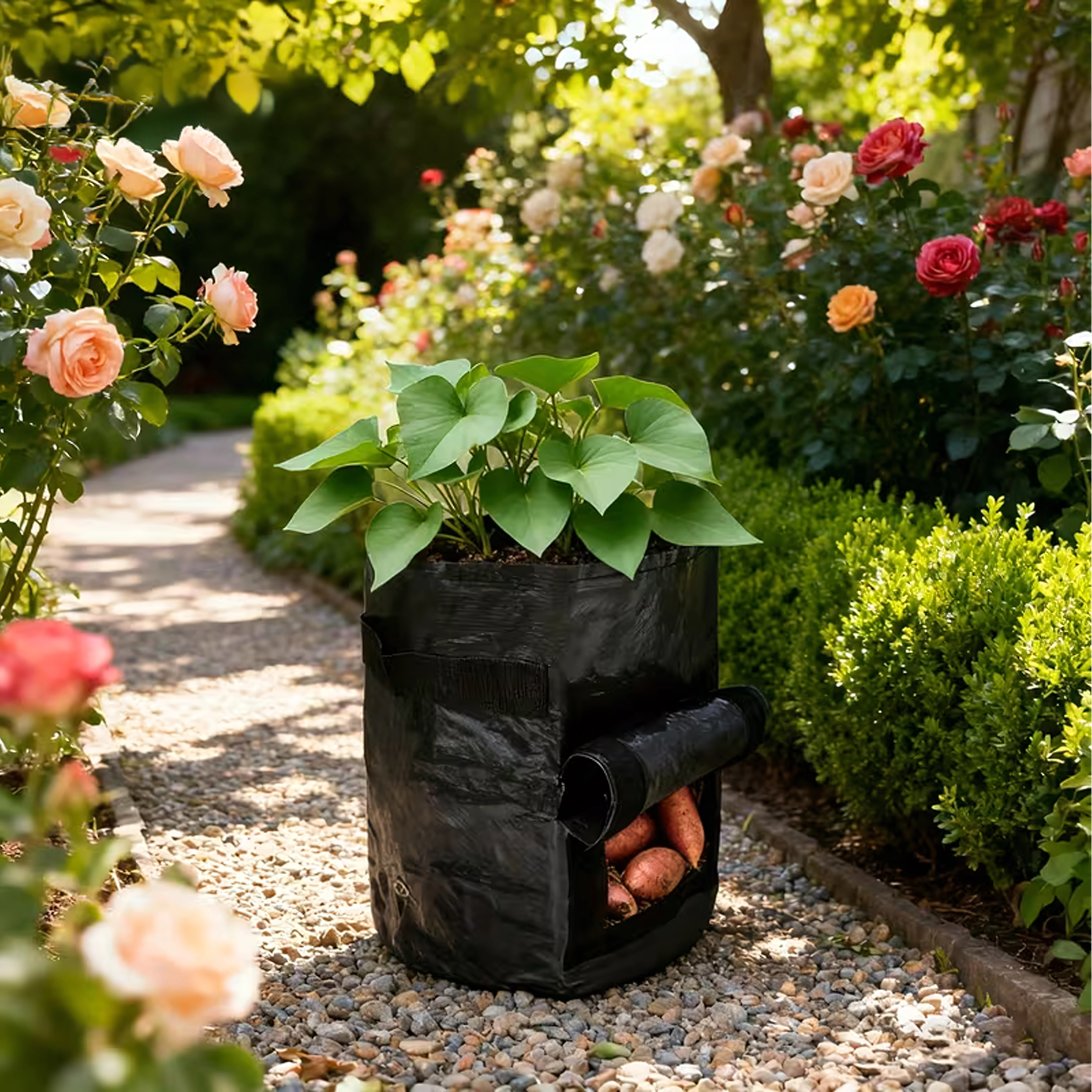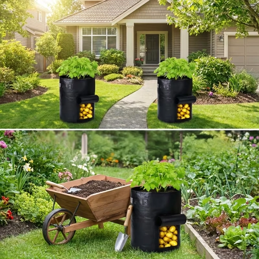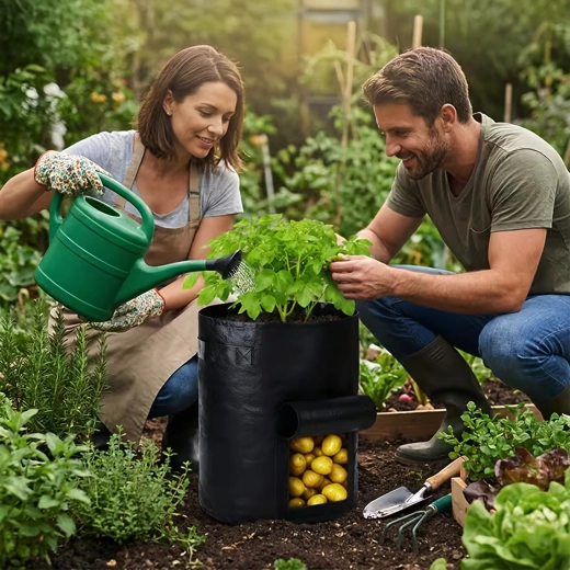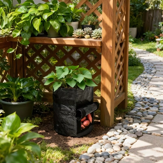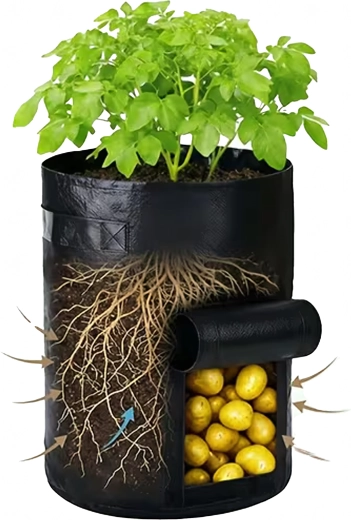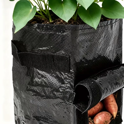 A masszív, légáteresztő nemszőtt textil elősegíti a levegő keringését, megelőzi a túlöntözést és a gyökerek túlmelegedését. A praktikus hordfülek megkönnyítik a mozgatást a kertben, erkélyen és a fóliasátorban is. A zsák könnyen összehajtható, és szezonon kívül nem foglal helyet.