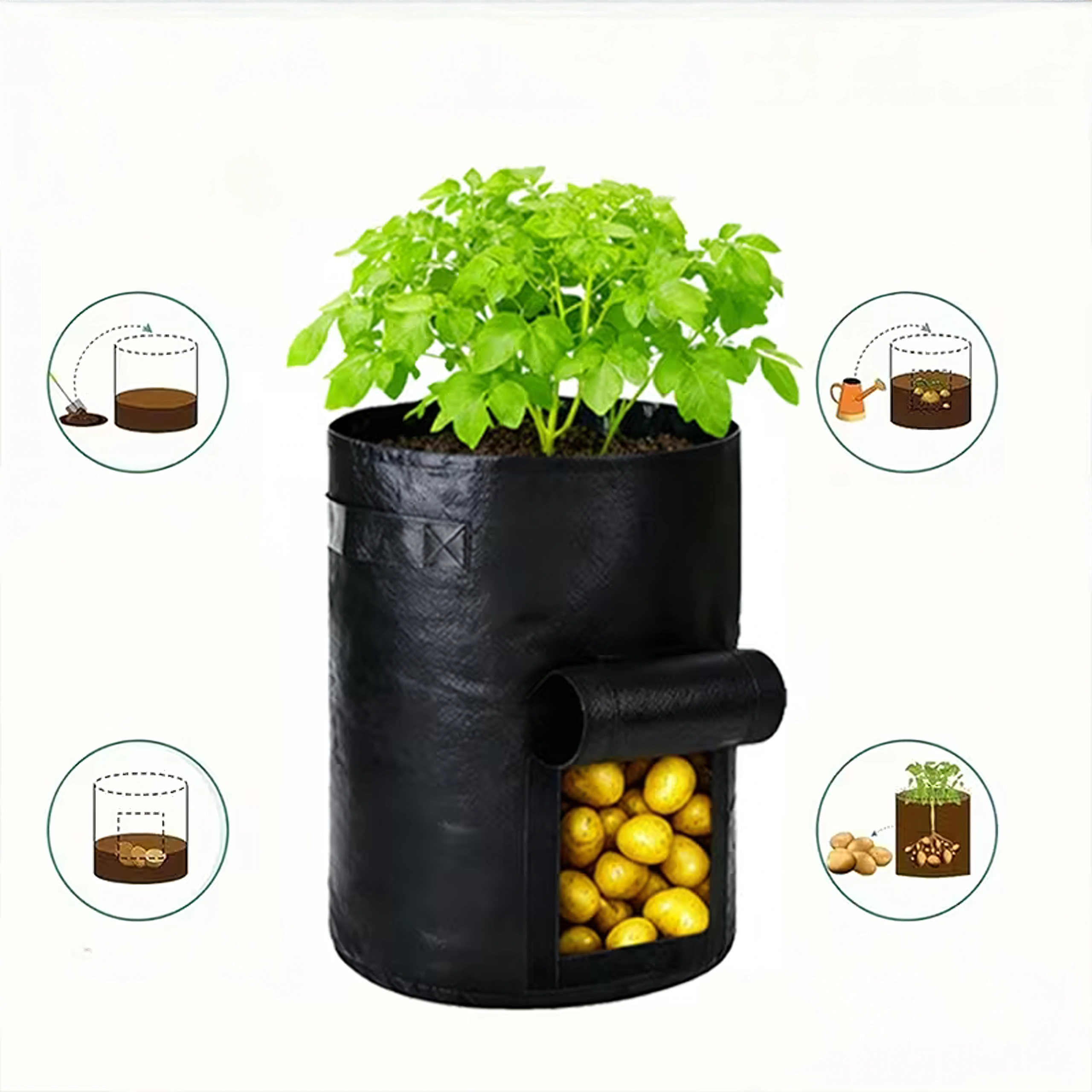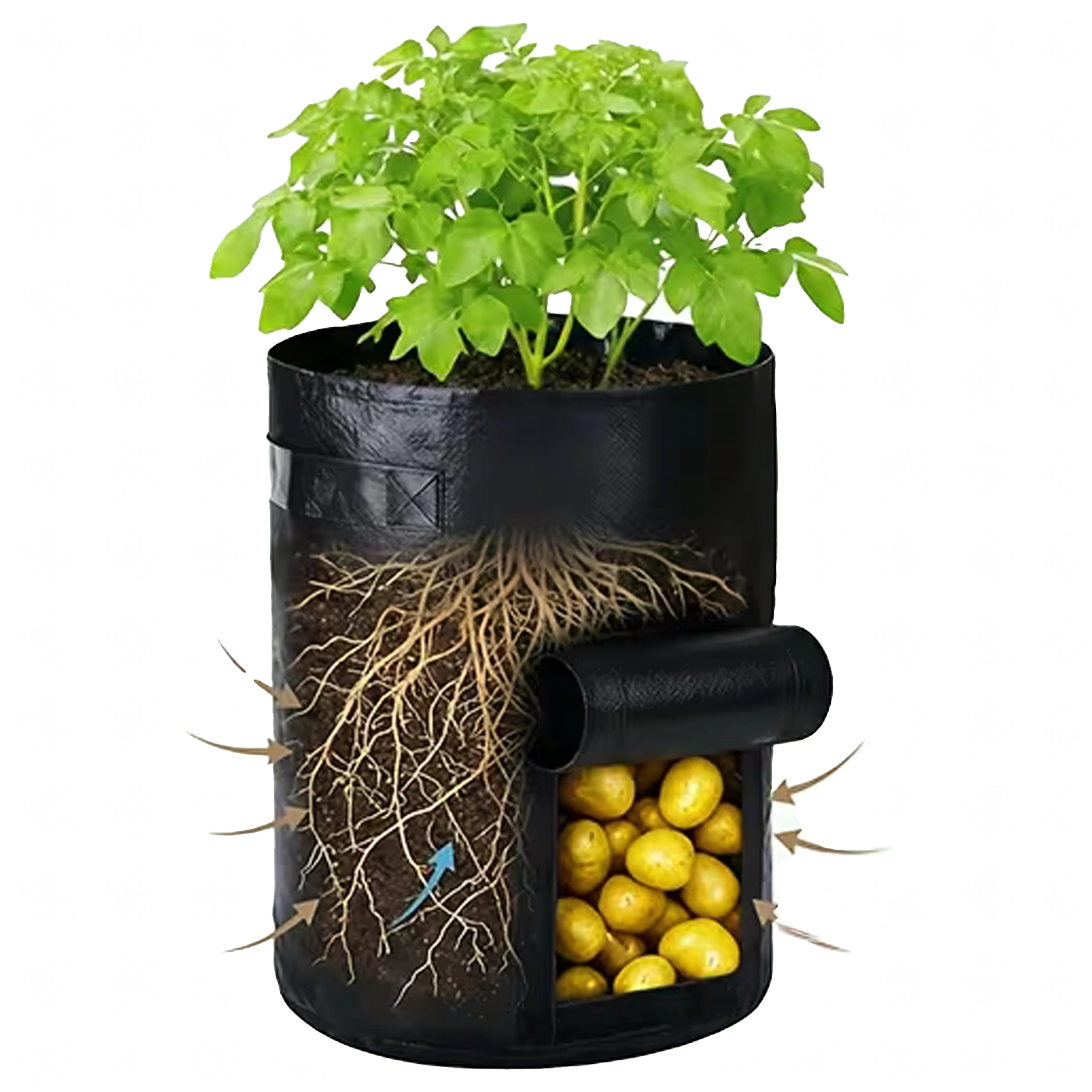 Maximalizálja a termést kis helyen is. Ez a termesztő zsák ideális burgonyához, sárgarépához, retekhez, hagymához vagy fűszernövényekhez. Az oldalsó, tépőzáras ablak megkönnyíti a folyamatos ellenőrzést és a betakarítást – anélkül, hogy át kellene szitálni a közeget.