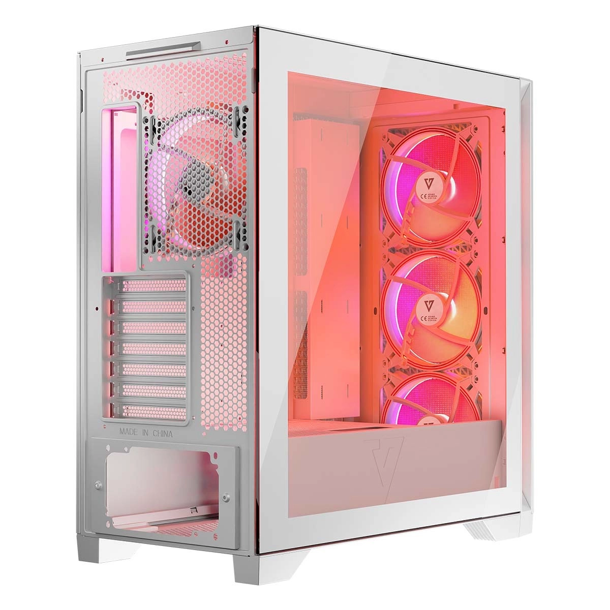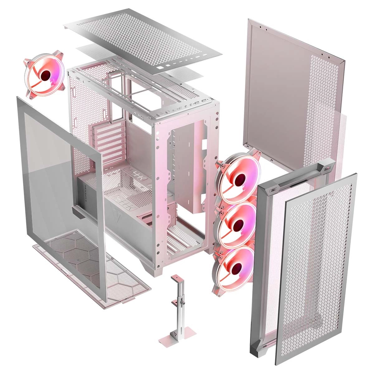 A Volcano Expanse T Apex ARGB egy modern midi torony, amelyet a maximális hűtési potenciálra és a letisztult megjelenésre terveztek. Az elülső mesh, valamint az oldalsó és felső porszűrők kordában tartják a szennyeződéseket, míg a 4× 140 mm-es ARGB (3× elöl, 1× hátul) hatékony légáramlást és látványos megvilágítást biztosít. A belső tér lehetővé teszi, hogy kábelrendező vagy 3× 120 mm-es ventilátorkeret között válasszon közvetlenül az alaplap mellett – pontosan az Ön prioritásai szerint.