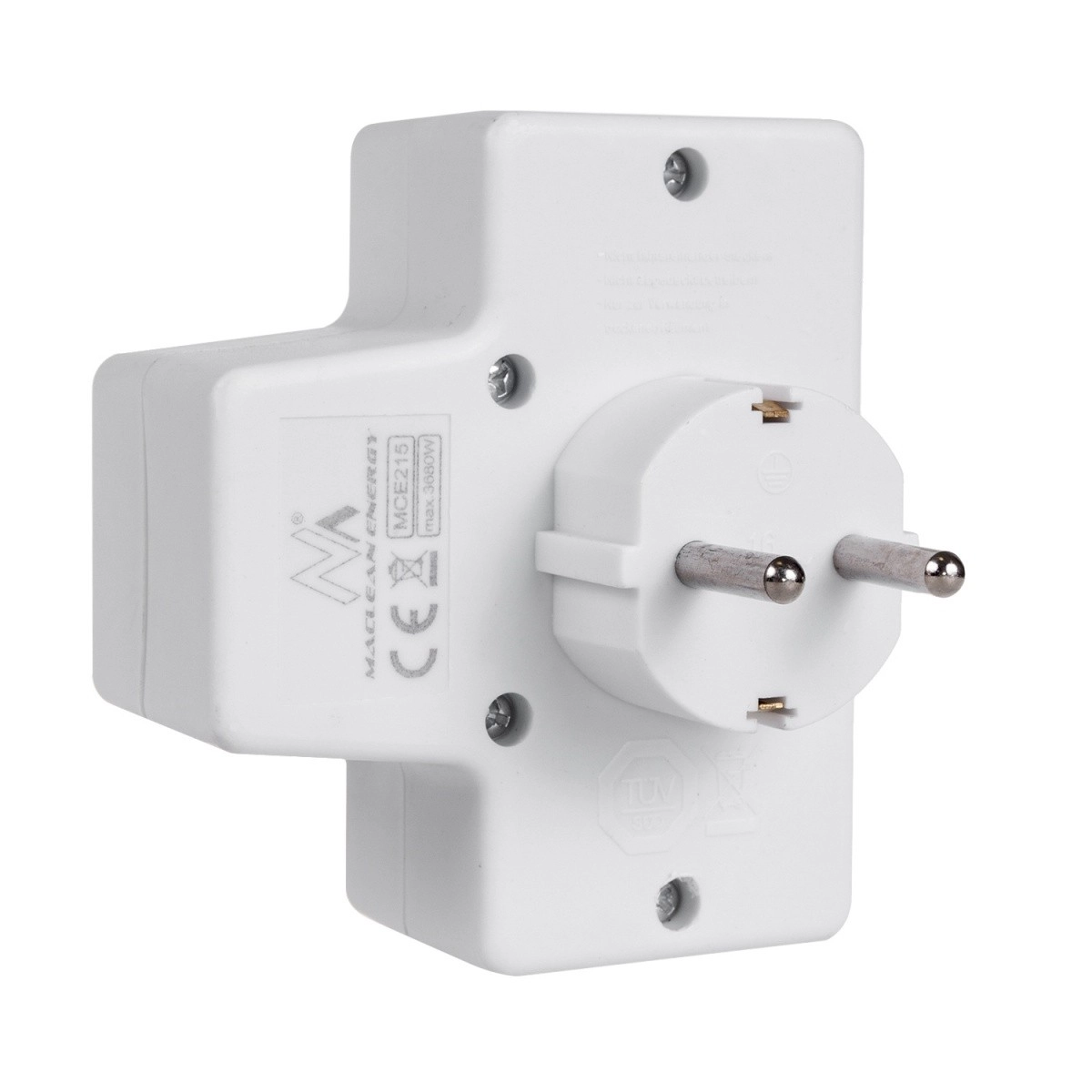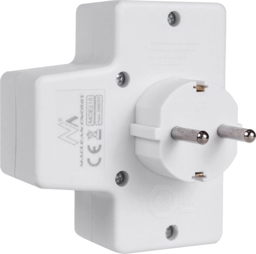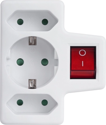 Praktikus dugós adapter egy Schuko 16 A és két Euro 2,5 A kimenettel, amely lehetővé teszi több készülék egyidejű csatlakoztatását hosszabbító kábelek nélkül. Az integrált kapcsoló egyetlen gombnyomással kikapcsol minden csatlakoztatott eszközt, így energiát takarít meg, a gyermekvédelem pedig növeli az otthoni biztonságot.