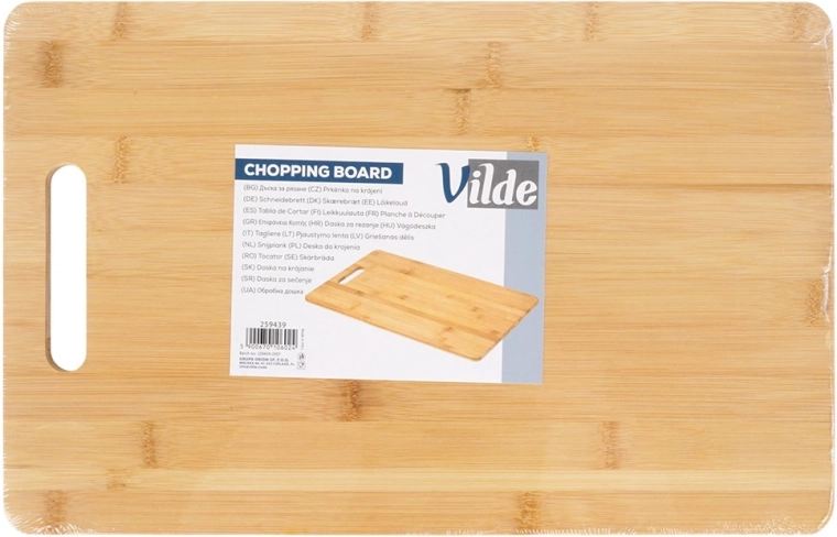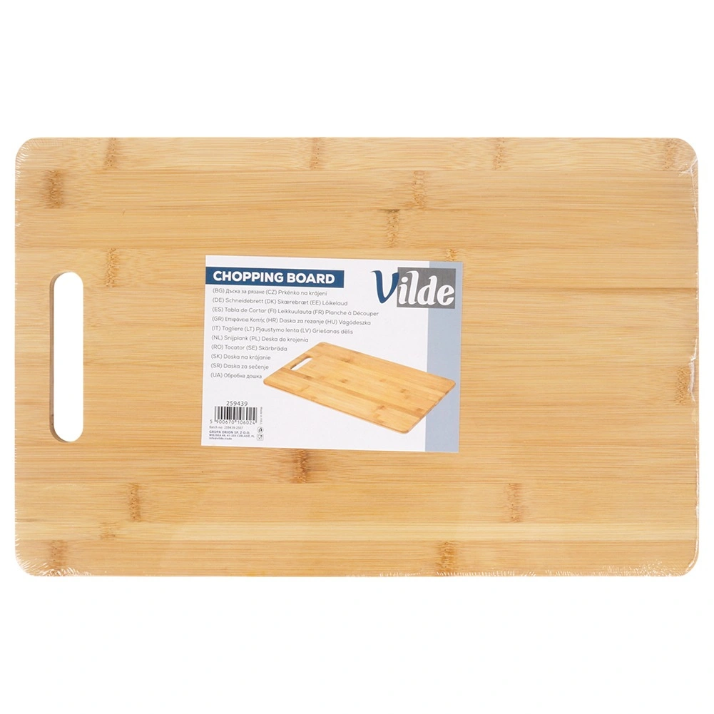 A téglalap alakú bambusz vágódeszka megbízható segítőtárs minden konyhában. A természetes anyag erős, könnyű és kíméli a késeket, így megőrzi az élüket. Az integrált nyílás/fogantyú megkönnyíti a hordozást és az akasztást.