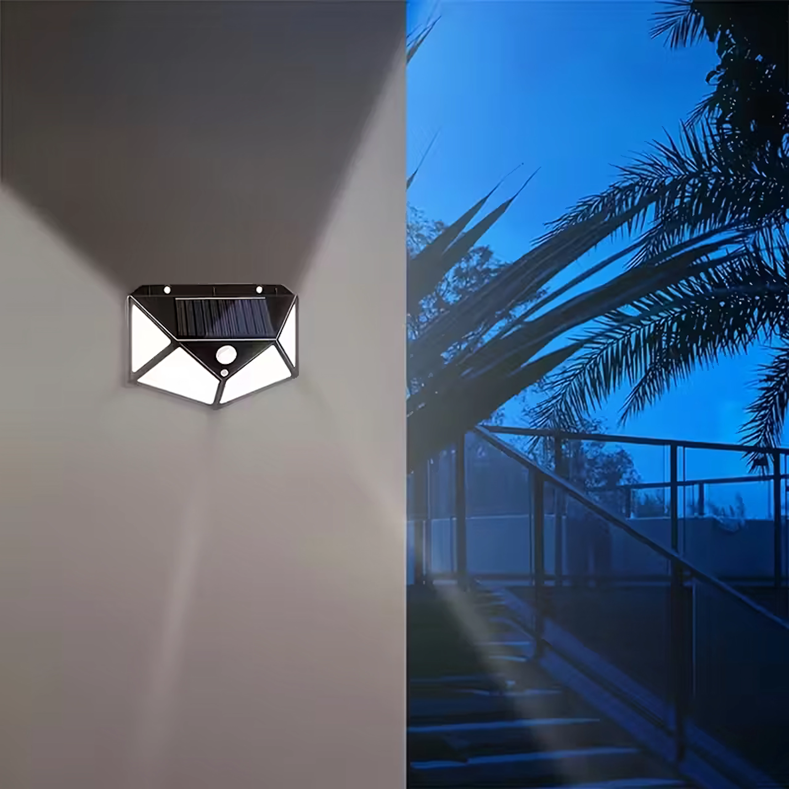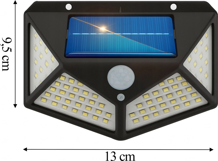 Az okos napelemes fali lámpa megbízható és takarékos megvilágítást nyújt mindenhol, ahol sötétedés után biztonságos közlekedésre van szükség. A beépített napelem nappal tölti az akkumulátort, a 100 nagy teljesítményű LED pedig széles lefedettségű, erős, fehér fényt ad. A PIR érzékelő mozgásra reagál, és csak akkor kapcsolja fel a fényt, amikor szükséges, ezzel növelve az akkumulátor üzemidejét.