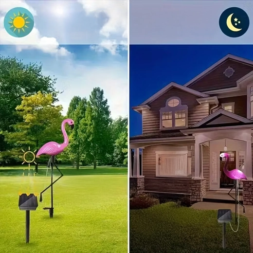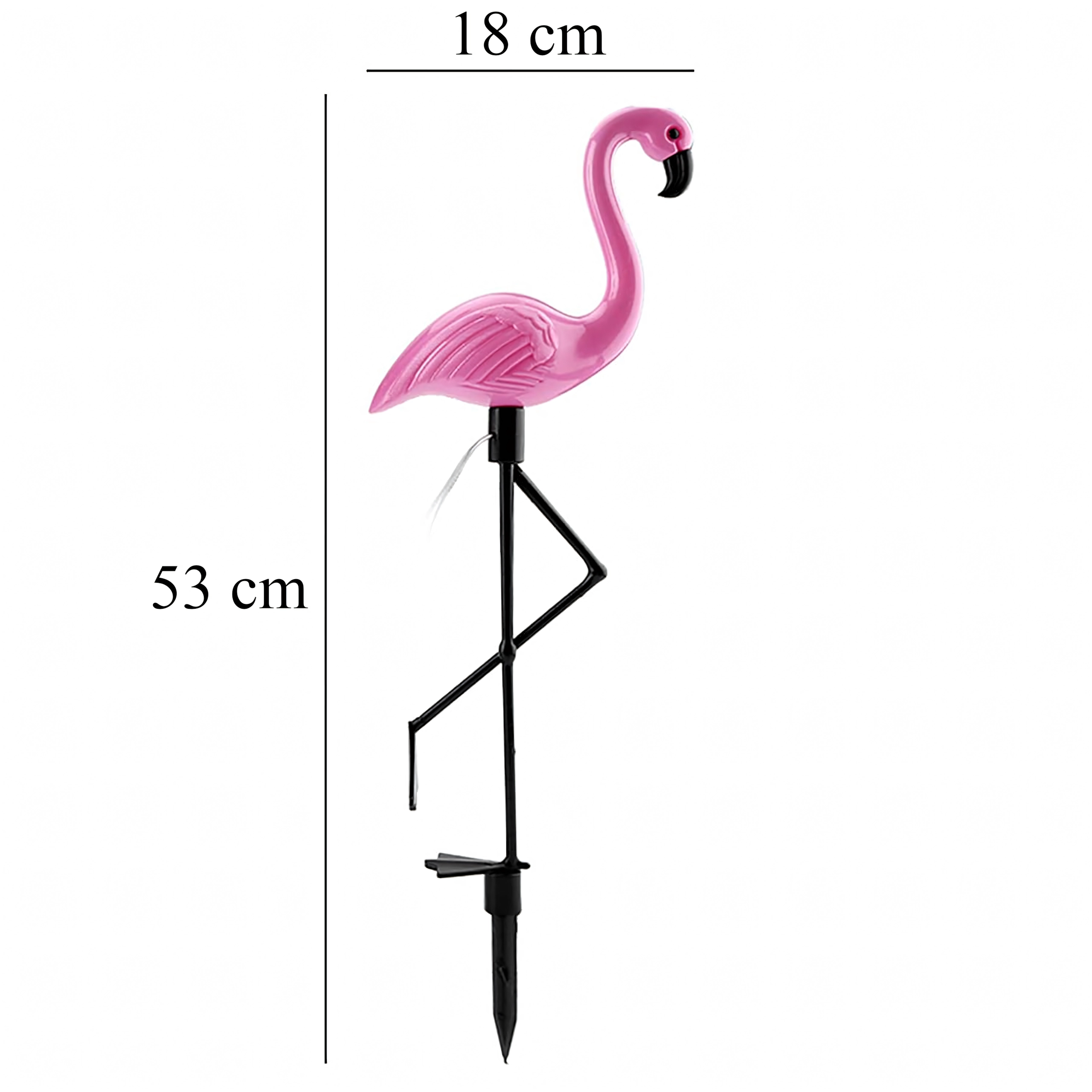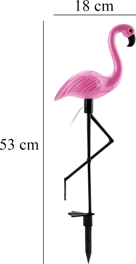 Dobja fel kertjét stílusos dekorációval – 53 cm magas, flamingó alakú napelemes LED lámpával. Kínál automatikus éjszakai világítást, egyszerű leszúrásos telepítést és időjárásállóságot. Ideális járdákhoz, ágyásokhoz és teraszokra.
