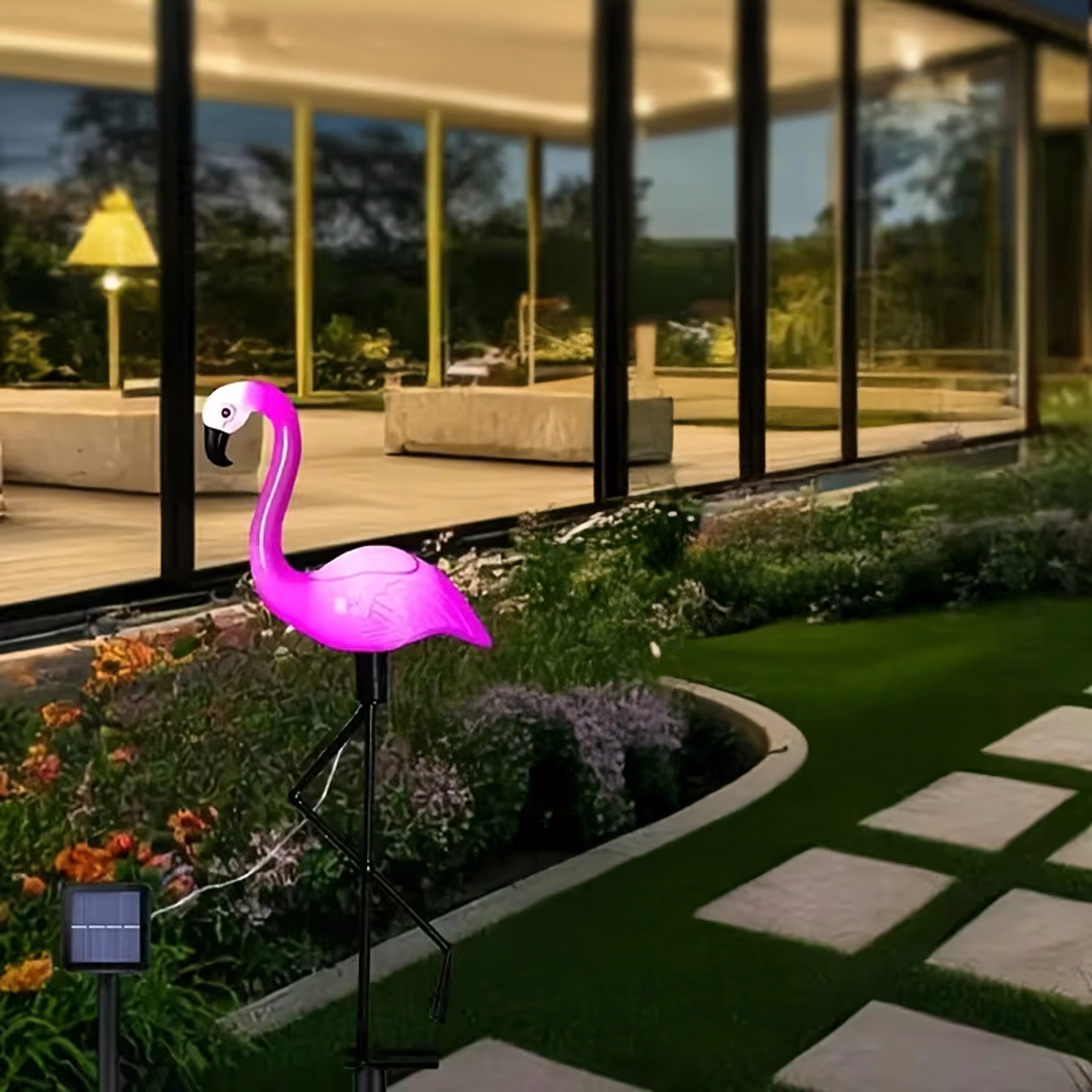 Ez a napelemes kerti flamingó lámpa játékos hangsúlyt és kellemes atmoszférát kölcsönöz a kültérnek. Nappal a napon töltődik, sötétedés után pedig automatikusan felkapcsol látványos, rózsaszín ragyogással. Remek választás ösvények szegélyezéséhez, a tó köré, vagy figyelemfelkeltő elemként kerti partikhoz.