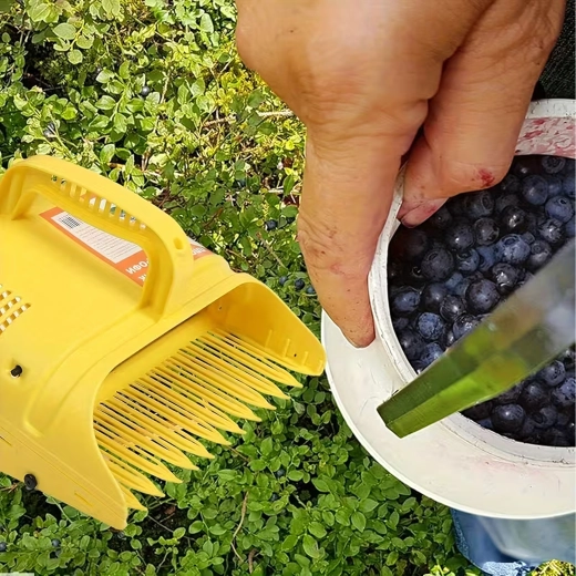 Praktikus kézi bogyószedő gereblyével, amely felgyorsítja a áfonya, ribizli és más apró gyümölcsök szüretét a bokor károsítása nélkül. A könnyű kialakítás és az ergonomikus fogantyú kényelmes használatot biztosít, míg a széles gereblye hatékonyan választja el a termést a levelektől és gallyaktól, és az integrált tartályba gyűjti őket.