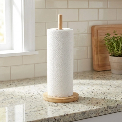 Az elegáns és tartós, természetes bambuszból készült tartó kiváló segítőtárs minden konyhába, irodába és fürdőszobába. Univerzális méretének köszönhetően rövid és hosszabb tekercsekhez is megfelelő, kevés helyet foglal, és a stabil talp révén szilárdan áll a munkafelületen.