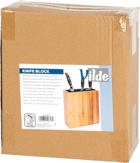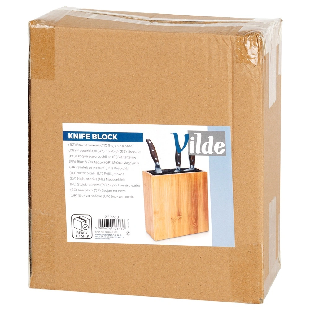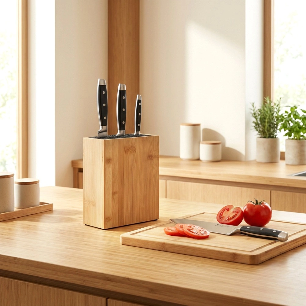 A természetes bambusz sima felületkezeléssel szépen kiegészíti a konyhát, és a filcpárnák használatának lehetőségével a blokk szilárdan áll a helyén.
