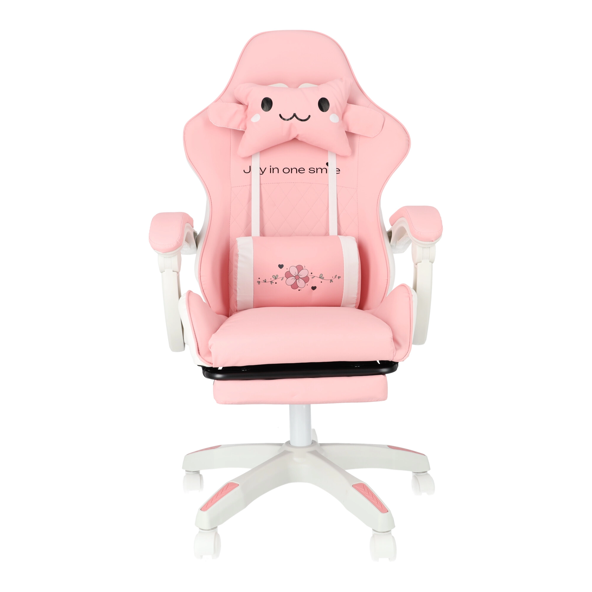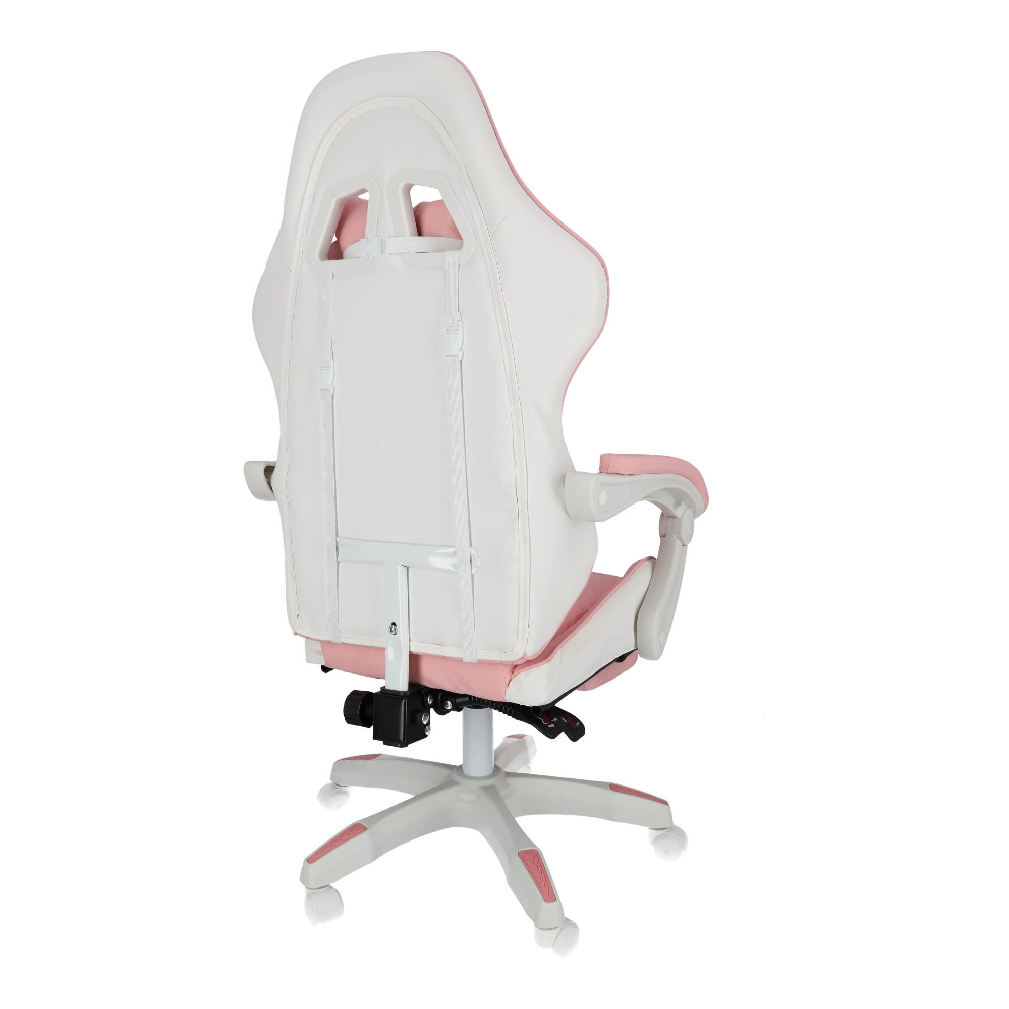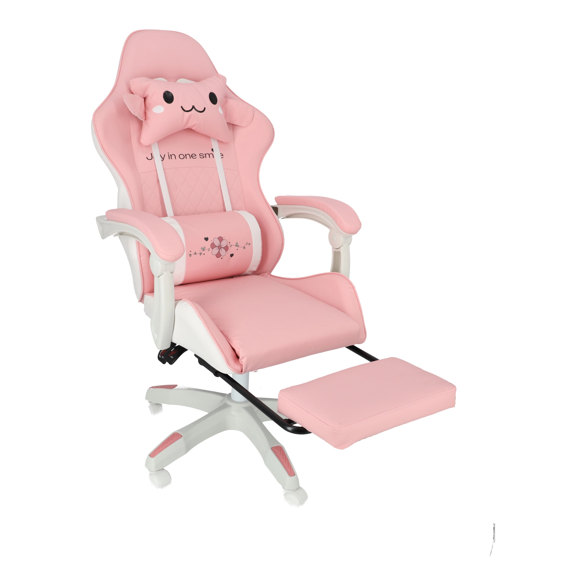 A kényelmet a párnázott karfák és a kihúzható lábtartó növelik, amelyek pillanatok alatt munkapózból pihenőhelyzetté alakítják az ülést. A masszív talp 360°-os forgómechanizmussal és görgőkkel könnyű mozgást biztosít a szobában. A stílusos rózsaszín-fehér kivitel modern gyerek- és diákszobákba illik.