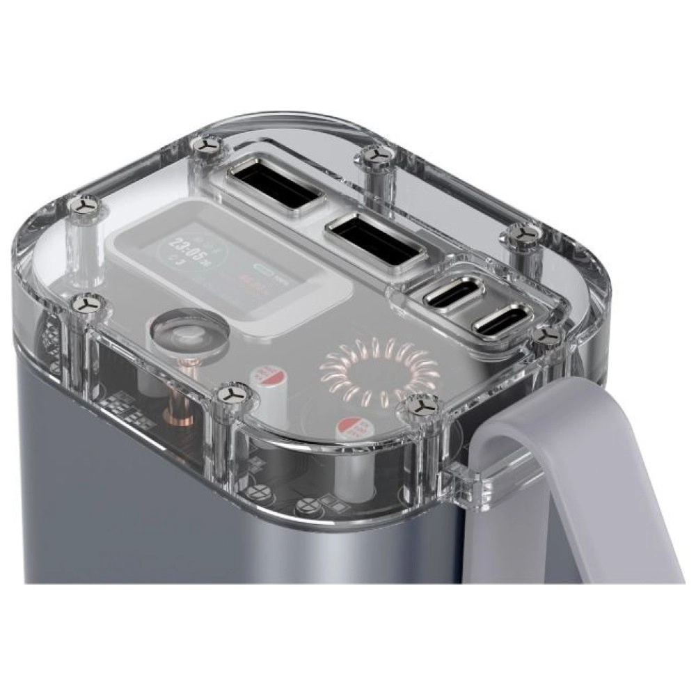 Szupererős powerbank 40 000 mAh kapacitással és PD 100 W technológiával a laptopok, tabletek és telefonok villámgyors töltéséhez. 2× USB‑C + 2× USB‑A portot kínál, IP67 víz‑ és porállóságot, valamint LCD kijelzőt, amely feszültséget, teljesítményt, hőmérsékletet és akkumulátorállapotot mutat. A beépített 500 lm LED lámpa 4 móddal és SOS funkcióval ideális választás utazáshoz és outdoor használathoz is.