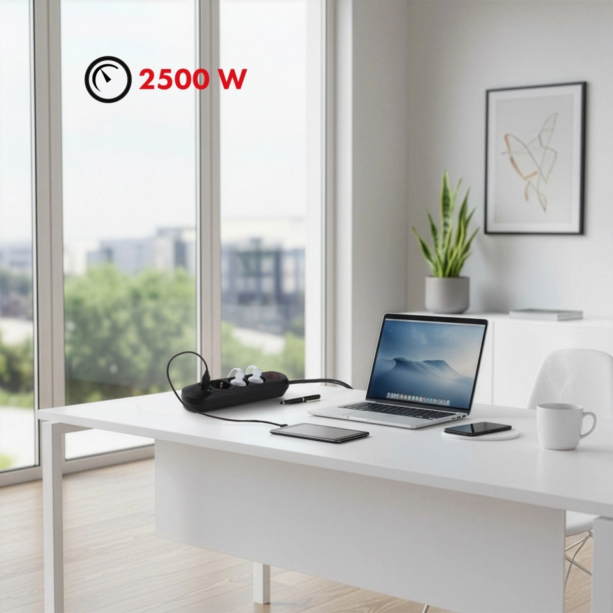 Az integrált USB, összesen akár 2,1 A árammal helyet és aljzatot takarít meg – nincs szükség külön töltőkre. A megvilágított főkapcsoló lehetővé teszi az összes csatlakoztatott eszköz egyidejű gyors kikapcsolását, növelve a biztonságot és csökkentve az energiafogyasztást. A kompakt ház és az 1,5 m-es betápkábel megkönnyíti az elhelyezést padlón, asztalnál vagy a nappaliban.