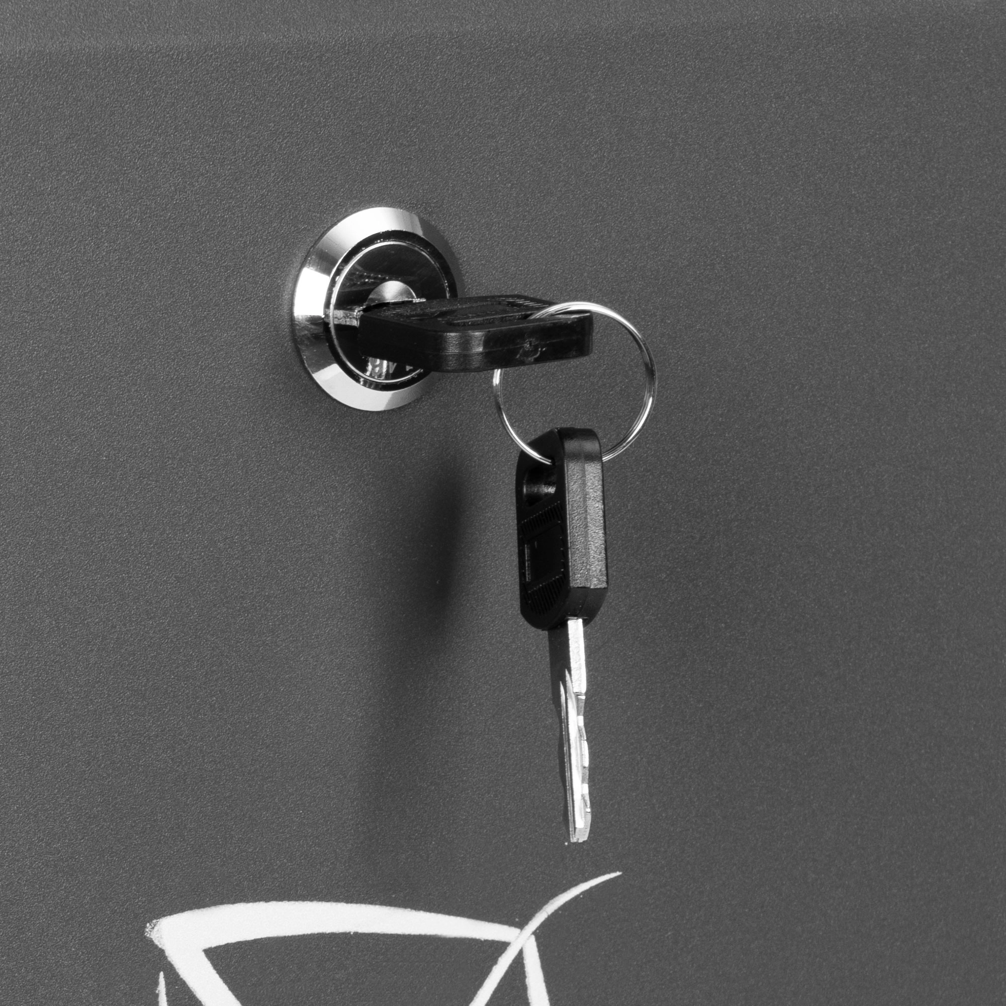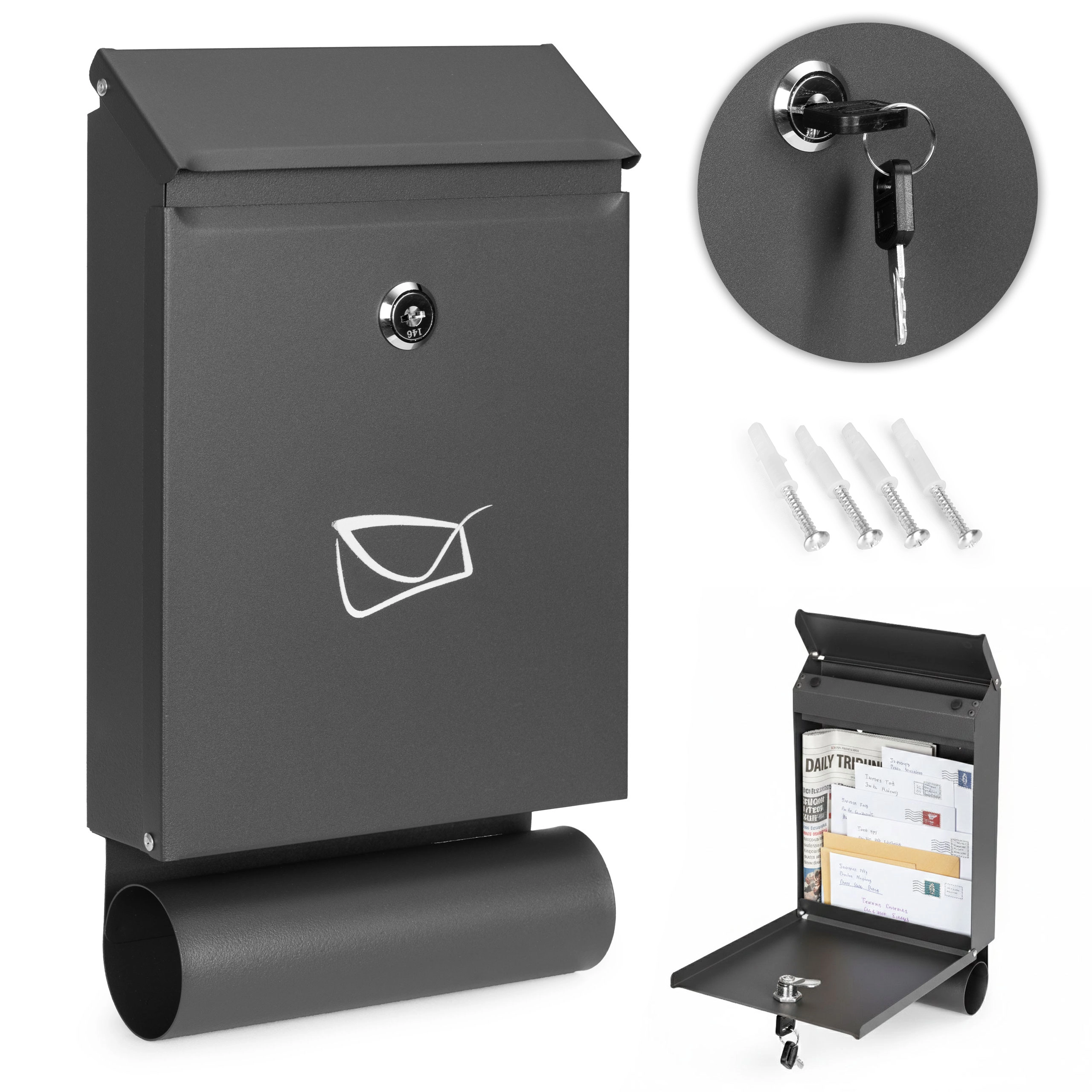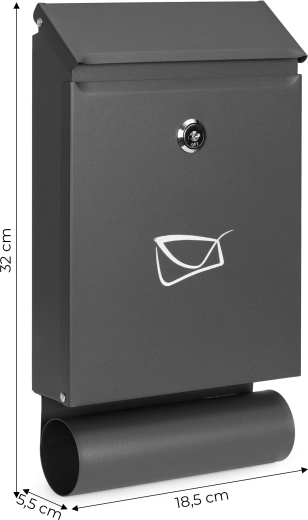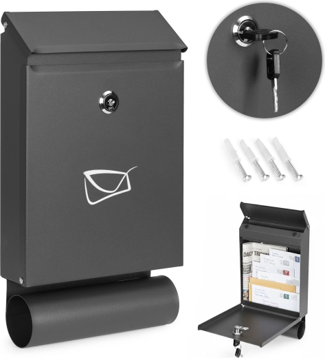 A praktikus, alsó hengeres újságtartó a szórólapokat és nyomtatványokat a fő ajtó kinyitása nélkül is elérhetővé teszi. A széles elülső ajtó megkönnyíti a küldemények kivételét, a két kulccsal ellátott zár pedig biztosítja, hogy a háztartás minden tagja hozzáférhessen a tartalomhoz. A csomag része egy szerelőkészlet a gyors és stabil telepítéshez.