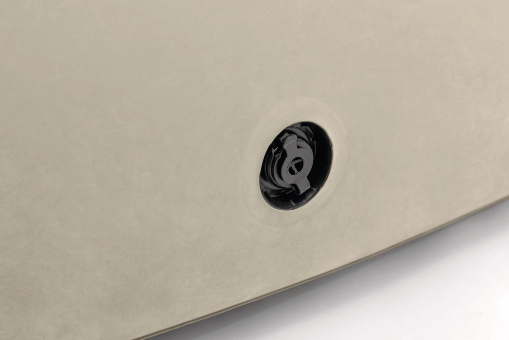 A stílusos Curve felfújható kanapé ötvözi a modern dizájnt, az olívabezs színű, bársonyos felületet és a maximális praktikusságot. A 2 az 1-ben szelepnek köszönhetően pillanatok alatt könnyen felfújható és leereszthető, könnyű, hordozható, és remekül illik a nappaliba, relax zónába és a teraszra.