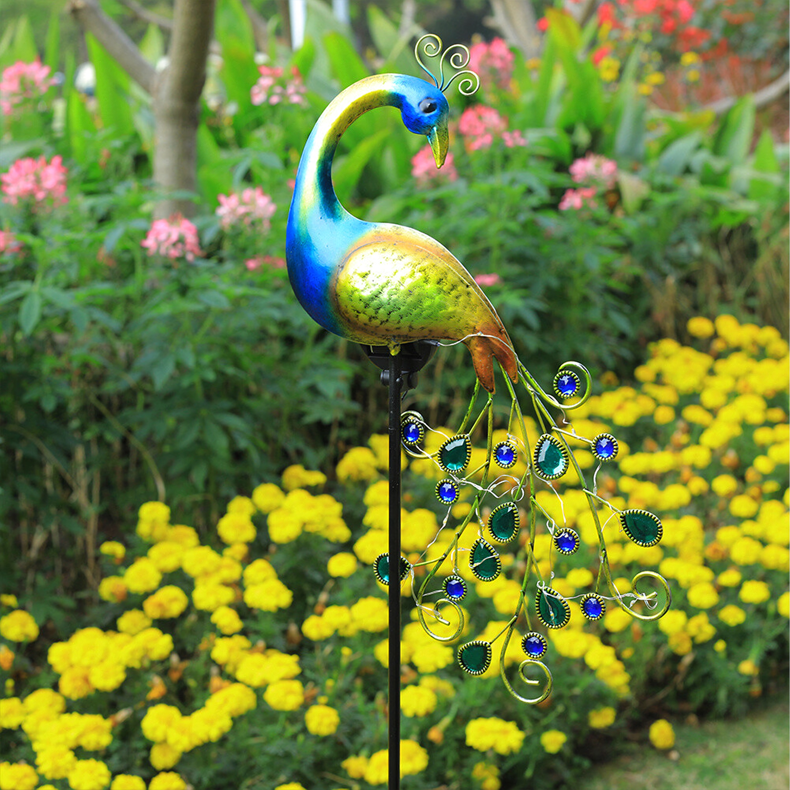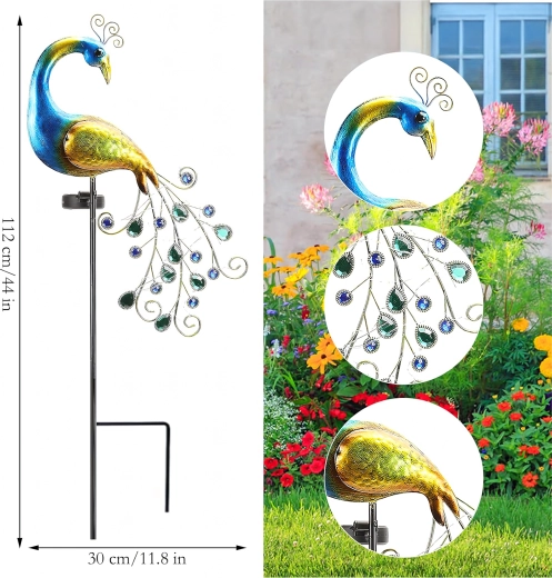 1 db napelemes páva rúddal és leszúró tüskével