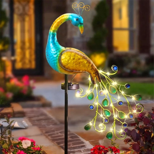 Napelemes páva kerti leszúrható lámpa