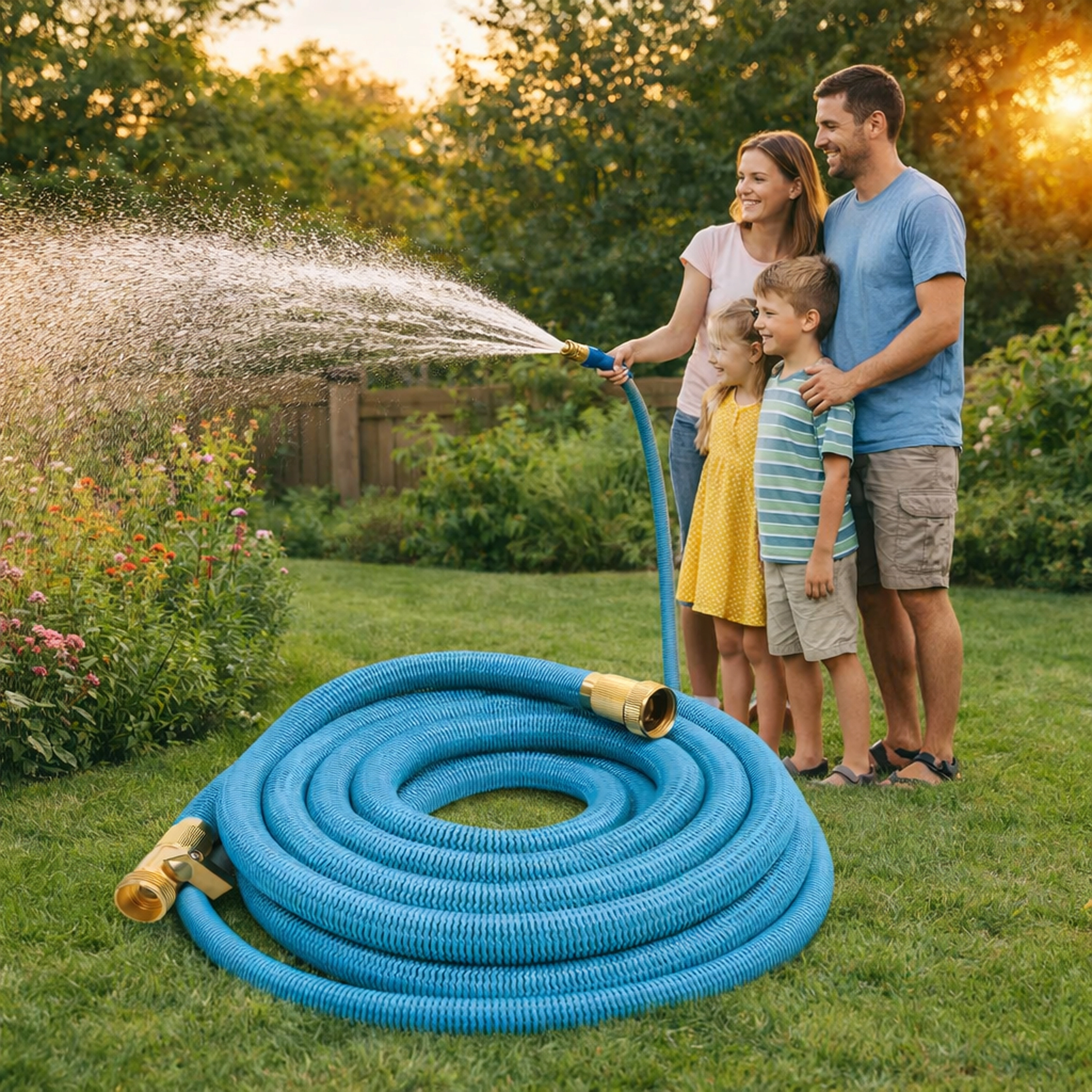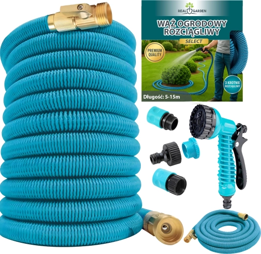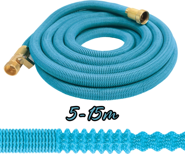 Élvezze a kényelmes öntözést a rugalmas, nyújtható tömlővel, amely víznyitáskor kb. 15 m-ig hosszabbodik, elzárás után pedig kompaktan összehúzódik. A csavarodásálló szövetköpeny nem törik, nem csavarodik, míg a sárgaréz csatlakozók tartósan szivárgásmentes kapcsolatot biztosítanak.