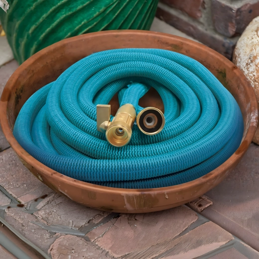 A tömlő víznyomás hatására akár háromszorosára hosszabbodik, elzárás után pedig kompakt méretre zsugorodik. A törésálló köpeny folyamatos vízáramlást biztosít csomók nélkül.