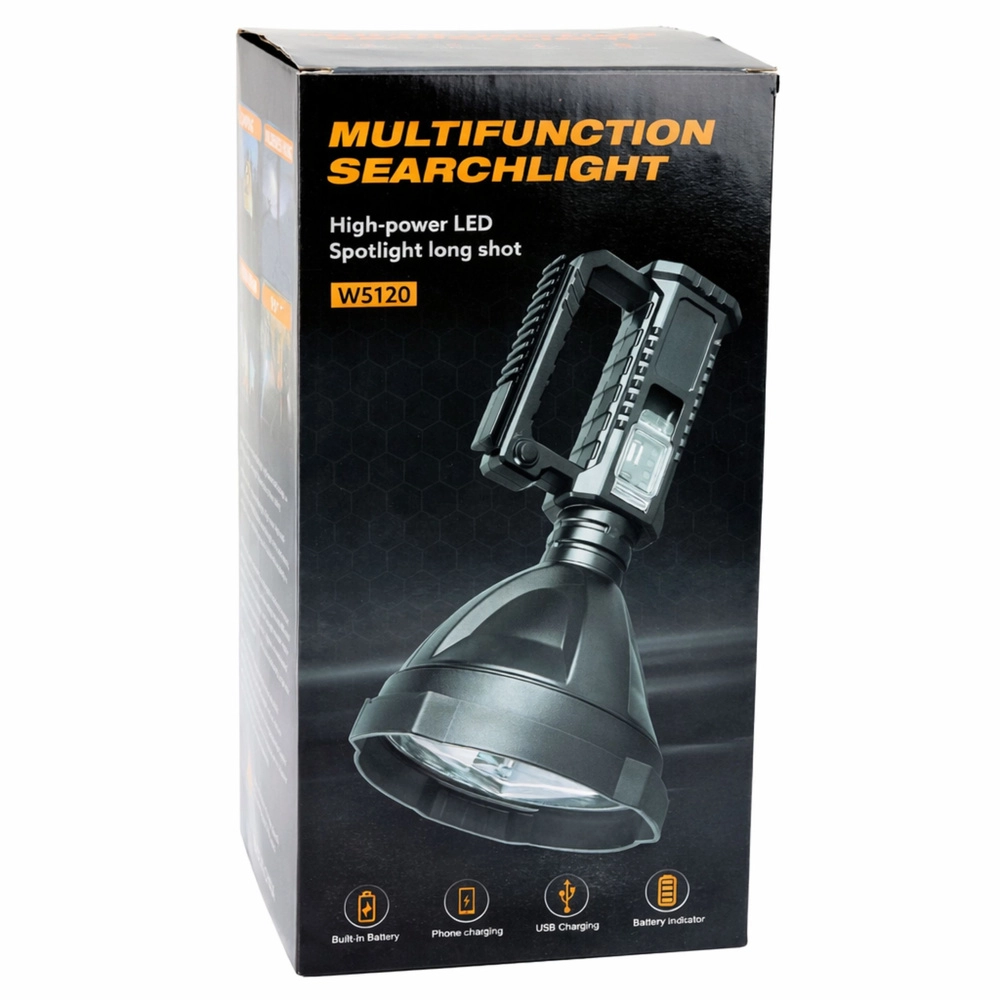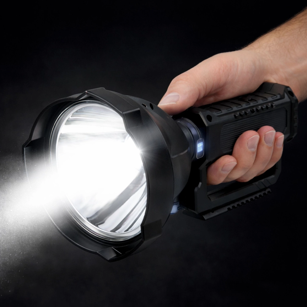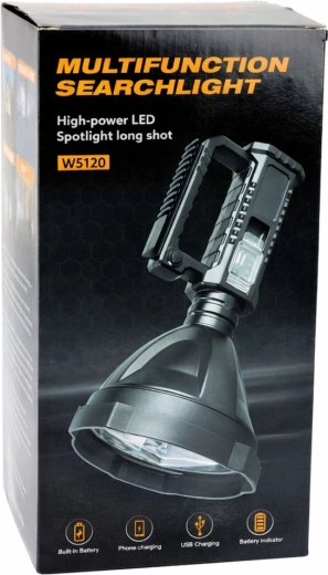 A reflektor beépített akkumulátorral rendelkezik USB-s töltéssel, valamint praktikus powerbank funkcióval a telefon vészhelyzeti töltéséhez. IPX5 vízállóság véd az eső és fröccsenő víz ellen. Az ergonomikus fogantyú és a robusztus kialakítás kényelmes fogást és hosszú élettartamot biztosít.