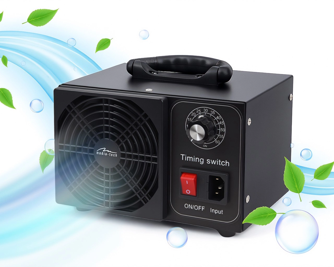 Az MT6540 ózongenerátor professzionális megoldás a beltéri levegő tisztítására és fertőtlenítésére. A nagy, 60 000 mg/óra kapacitás gyorsan eltávolítja a baktériumokat, vírusokat, penészt és a kellemetlen szagokat. A masszív felépítésnek és a 2600 ford/perc ventilátornak köszönhetően az ózon egyenletesen oszlik el a teljes térben.