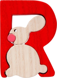 A nyuszis R fa betű játékos formában segít elsajátítani az ábécé alapjait. Használható kirakó részeként, név összeállításához, vagy dekorációként falra és bútorra (kétoldalas ragasztószalag használatával). A masszív kivitel hosszú élettartamot és biztonságos játékot biztosít.