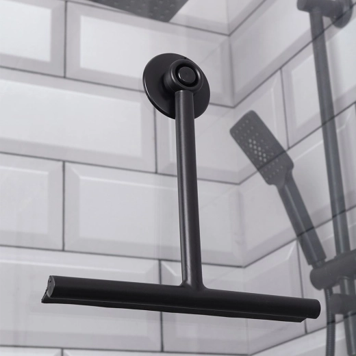 Univerzális fekete üveglehúzó praktikus tapadókoronggal a könnyű felakasztáshoz, amely zuhanyait, ablakait és tükrét tökéletesen tisztán tartja. A minőségi műanyagnak és a rugalmas TPE élnek köszönhetően a víz gyorsan és erőfeszítés nélkül lehúzható, a felületet csíkmentesen és karcok nélkül hagyva. A kompakt méretek és a stílusos, minimalista dizájn remekül illeszkednek bármely fürdőszobába.