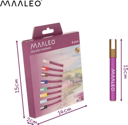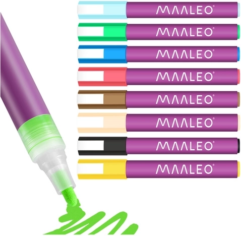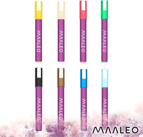 A MAALEO akril markerek ötvözik a filctoll kényelmét a valódi akrilfesték hatásával. Könnyedén készíthet telt fedésű felületeket, kontrasztos kontúrokat és finom részleteket ecset és rendetlenség nélkül. Ideális papírra, fára, műanyagra, textilre, üvegre, fémre, kőre és kerámiára – a festék nem üt át, és száradás után víz- és kopásálló.