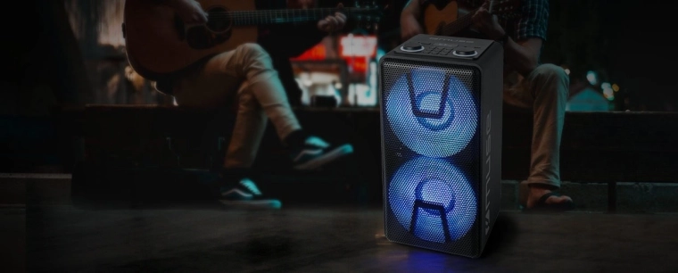 A beépített 1500 mAh / 7,4 V Li-ion akkumulátornak köszönhetően konnektor nélkül is élvezheti a zenét. Élő fellépésekhez vagy karaoke-hoz nem hiányzik a MIC bemenet és a gitár bemenet, míg a 3,5 mm-es AUX in a klasszikus vezetékes csatlakozást egészíti ki. A sztereó párosítás funkció lehetővé teszi két kompatibilis hangszóró összekapcsolását a szélesebb, térhatású hangszínpad kialakításához.