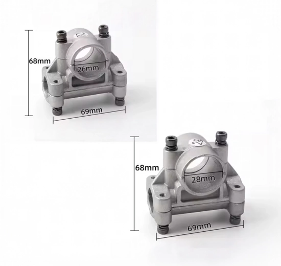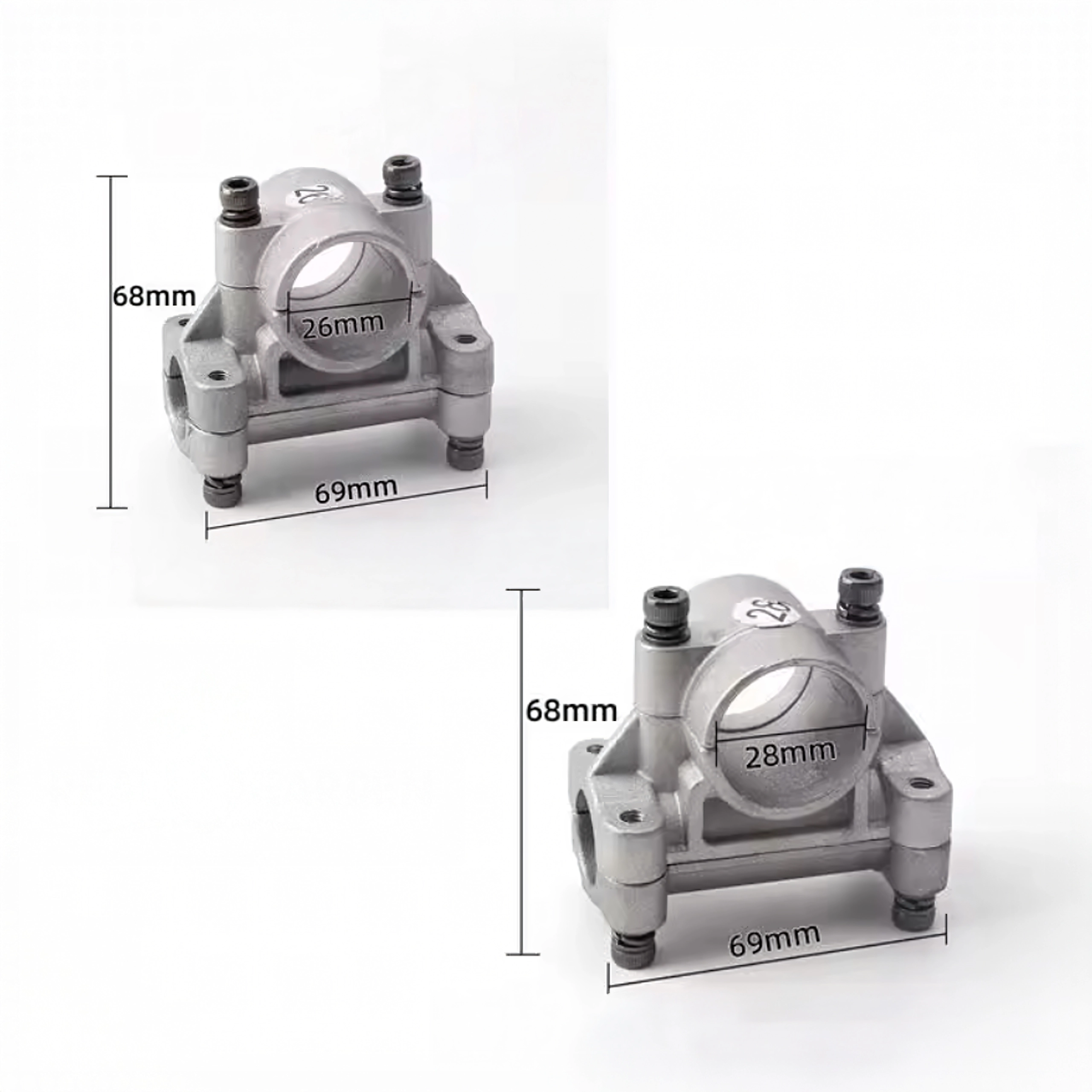 Az állítható bilincs biztonságosan illeszkedik a 26–28 mm átmérőjű szegélynyíró csövére. A szerelés gyors, speciális szerszám nélkül.
