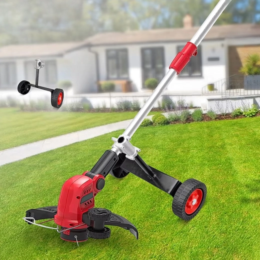 Két robusztus kerék támasztja a szegélynyírót, és segít a vágást pontosan a szegélyek és ágyások vonalán vezetni, a „belevágás” nélkül a gyepbe.
