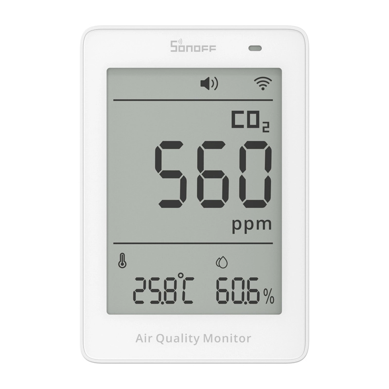 A kompakt Sonoff AirGuard CO2 levegőminőség‑monitor pontos NDIR szenzorral valós időben méri a CO, a hőmérséklet és a páratartalom értékeit. 3,73"‑os LCD kijelzőt, 2,4 GHz‑es Wi‑Fi kapcsolatot, Matter támogatást, hang‑ és fényriasztásokat, valamint mérési előzményeket kínál, így átlátható képet ad az otthoni, irodai vagy gyerekszobai környezetéről.