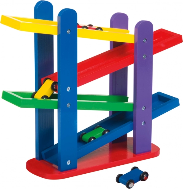 Fa autópálya három színes kisautóval biztosít végtelen szórakozást a kaskádos színes pályákon való könnyű átfordulásnak köszönhetően.