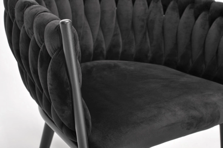 A ROSA fotelt olyan enteriőrökbe tervezték, ahol a stílus és a kényelem találkozik. A mély fekete szín finom, bársonyos fénnyel időtálló hatást kelt, és könnyedén illeszkedik a modern, minimalista vagy glamour berendezéshez. A fonott háttámla karakteres dizájnelem, amely bármely helyiséget kifinomulttá varázsol.
