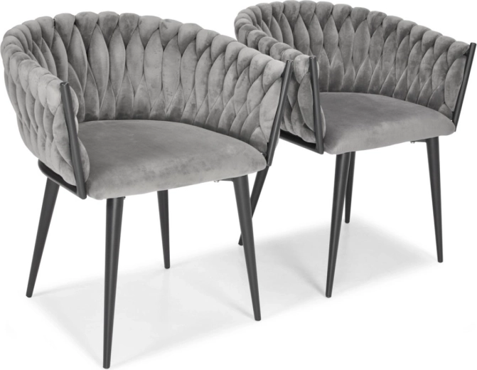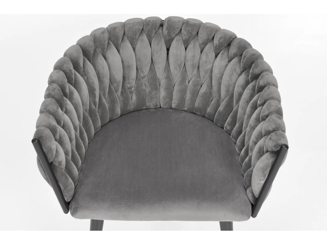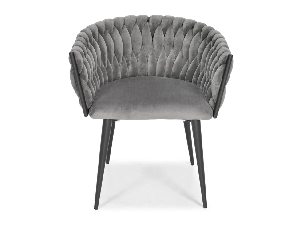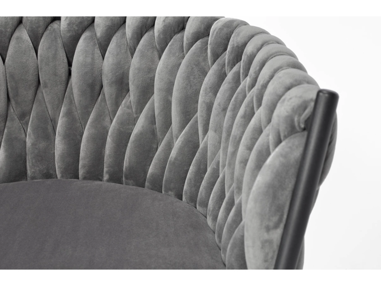 Vigyen otthonába eleganciát és kényelmet modern, glamour stílusban. A finoman fénylő bársony kárpitozás luxushatást kelt, és szépen kontrasztál a fekete, karcsú fém lábakkal. A hangsúlyos fonott háttámla dekoratív elem, amely első pillantásra megragadja a tekintetet, és a széket a helyiség meghatározó dizájndarabjává teszi.