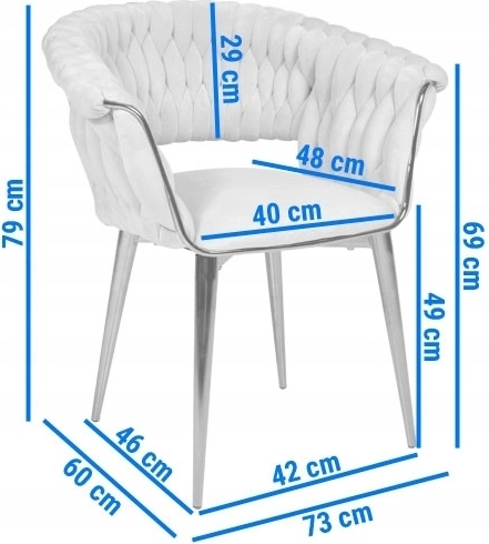 A minőségi habbal készült puha párnázásnak és az ergonomikusan formált háttámlának köszönhetően a fotel hosszabb ülésekre is kényelmes. A masszív acéllábak stabilitást és hosszú élettartamot biztosítanak, így alkalmas mindennapi étkezéshez, valamint stílusos akcentus ülőhelyként a nappaliban vagy a fésülködőasztalnál.