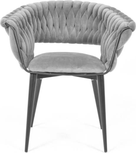 Teremtsen otthonában meghitt, mégis luxus hangulatú sarkot. A finoman fénylő szürke bársony prémium hatást kelt, kellemesen veri vissza a fényt, és a fekete lábakkal együtt időtlen, modern kontrasztot alkot. A jellegzetes fonott kárpitozású háttámla design akcentust és egyben kellemes támaszt nyújt.
